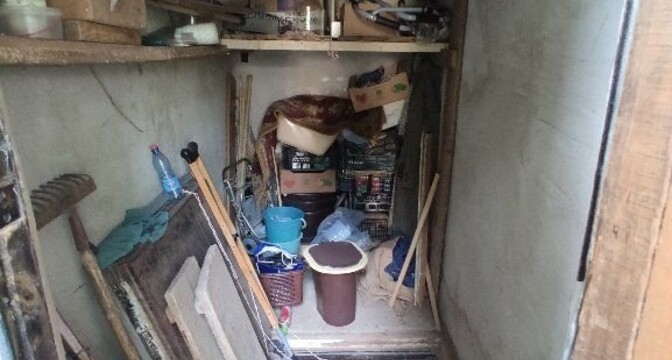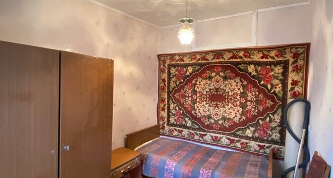 Общая площадь 43 квадратных метра (жилая — 22,5, кухня — 6). Одно из преимуществ квартиры в высоких потолках — 2,8 метра. Здесь деревянные полы и окна, есть счетчики воды, мебель. Санузел раздельный. Также при покупке квартиры достанется отдельно стоящий вместительный сарай.