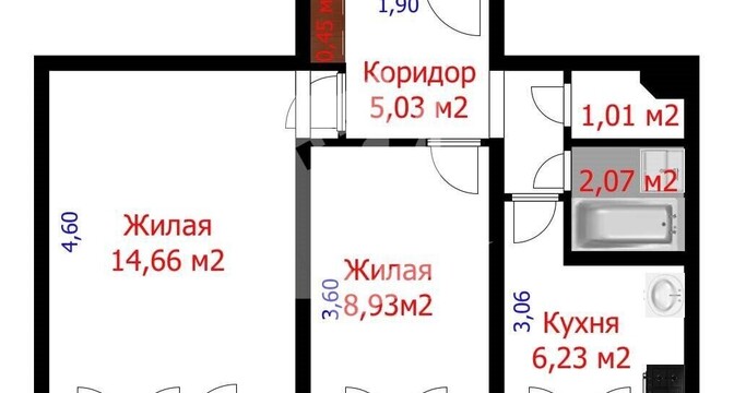 Двухкомнатная квартира продается на первом этаже панельной пятиэтажки на улице Кнорина, 12. Площадь квартиры 46 м² (жилая — 30 м², кухня — 6 м²). Дом построен в 1962 году.