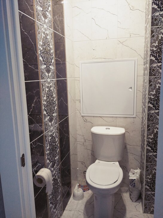 — Перенос унитаза и пайка труб под ванну и умывальник заняли два вечера. Укладка плитки, зачистка ее фугой и мытье (для нас это был самый трудоемкий процесс из всех) — целую неделю. Сам унитаз оставили тот, который был при сдаче дома.
