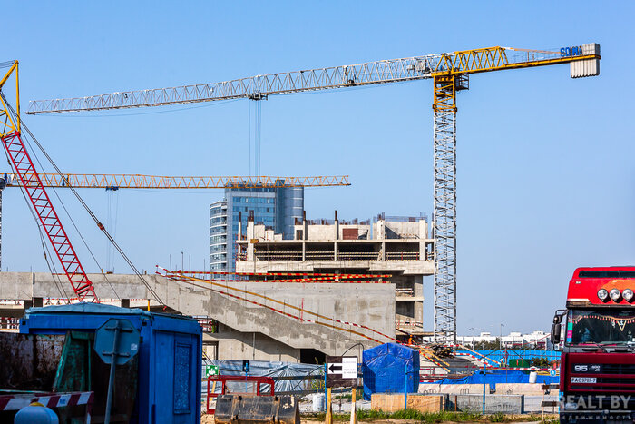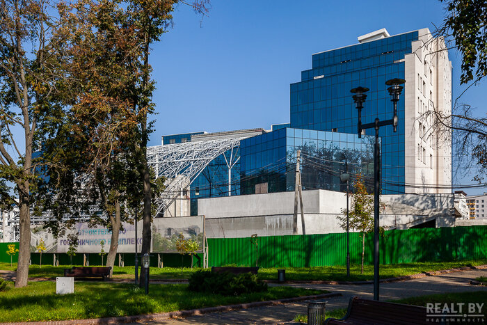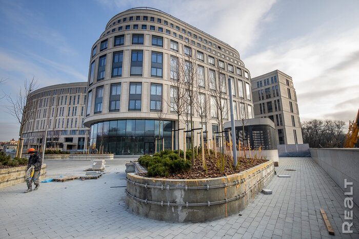 На одном из зданий по проспекту Независимости, которое располагается ближе к цирку, работы завершены, идет сбор заключений для сдачи этой части комплекса. Вероятно, что она будет введена до конца года. Выполнено благоустройство территории со стороны проспекта Независимости. Остальные здания планируется ввести в 1−2 квартале следующего года. Известно, что первоначальные планы по функциональному назначению сооружения поменялись. В нем разместятся исключительно административные помещения.