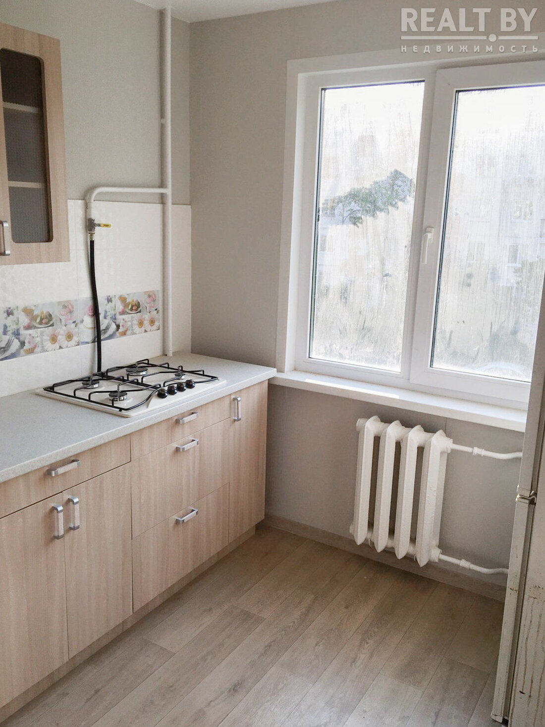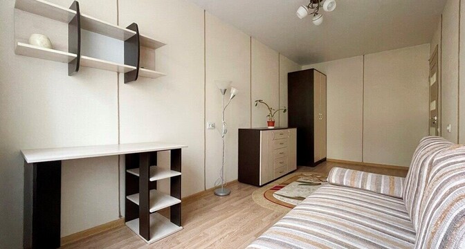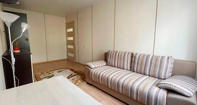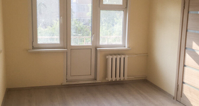 Квартира полностью готова к проживанию. В 2020 году в ней сделан ремонт. Установлены стеклопакеты, межкомнатные двери. Напольное покрытие — ламинат. Совмещенный санузел облицован плиткой. Также имеется душевая кабина, кухонный гарнитур с варочной панелью. Есть балкон.
