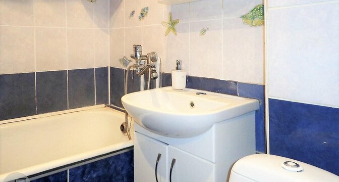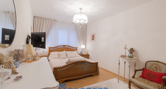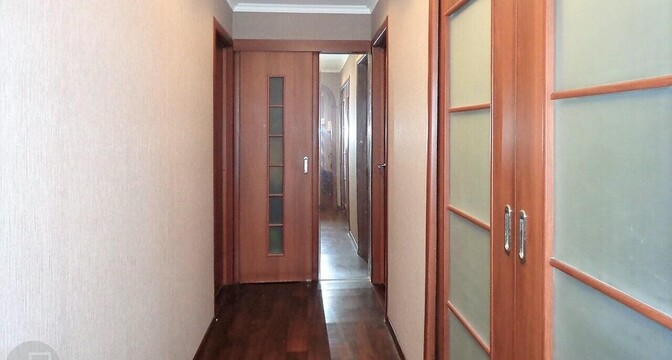 В квартире удобная планировка — три изолированные комнаты. Выполнен хороший ремонт — в комнатах уложен ламинат, в коридоре и кухне — плитка. Санузлы также облицованы плиткой. Установлена качественная сантехника, счетчики воды.