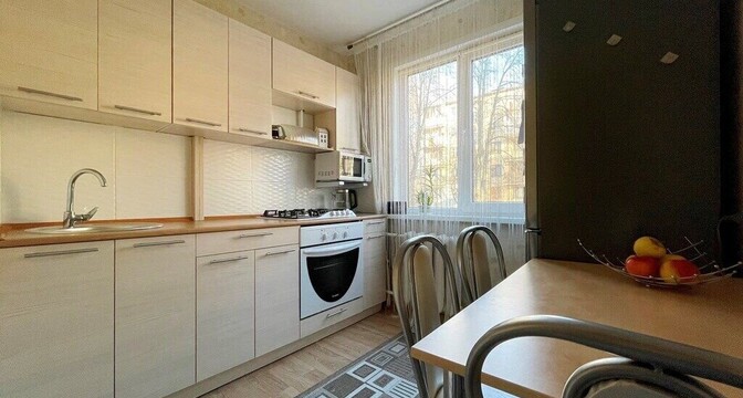 Есть встроенная кухонная мебель с газовой плитой и вытяжкой. Оборудованы места хранения, в том числе вместительные шкафы-купе. В санузле мебель для ванной комнаты. Заменены сантехнические коммуникации. Межкомнатные двери из МДФ, входная дверь — металлическая. Подключены приборы учета, проведена оптоволоконная связь.