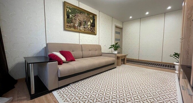 — Квартира в жилом состоянии. Натяжные потолки с точечными осветительными приборами. Напольное покрытие: ковролин, линолеум. В оконных проемах стеклопакеты. Балкон застеклен и утеплен, — пишет автор объявления.