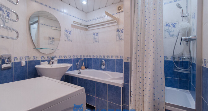 Как пишут в объявлении, в квартире выполнен отличный ремонт. Напольное покрытие — ламинат, в совмещенном санузле — плитка. Установлены стеклопакеты, металлическая входная дверь, счетчики воды. Жилье меблировано, имеется бытовая техника. За квартирой закреплено подвальное помещение.