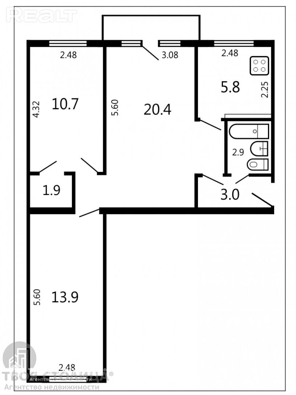Трехкомнатная квартира площадью 56 «квадратов» (жилая — 42, кухня — 6) продается в доме на улице Белинского, 6. Она находится на третьем этаже панельной пятиэтажки, построенной в 1962 году.