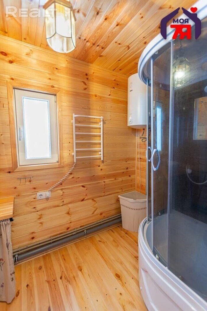 Отапливается дом твердотопливным котлом и камином, про запас есть еще и электрокотел. В комнатах стоят современные радиаторы, в подсобных помещениях — чугунные. Для здоровья и релакса есть банька, а на лето — бассейн во дворе.