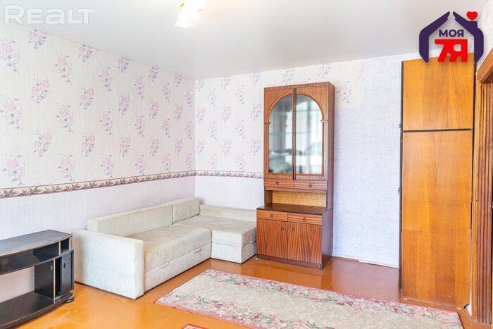 В доме на улице Пуховичская, 12 продается однокомнатная квартира площадью 31,5 квадратного метра (жилая — 17, кухня — 6). Она расположена на третьем этаже кирпичного трехэтажного дома, построенного в 1960 году.