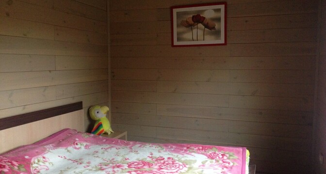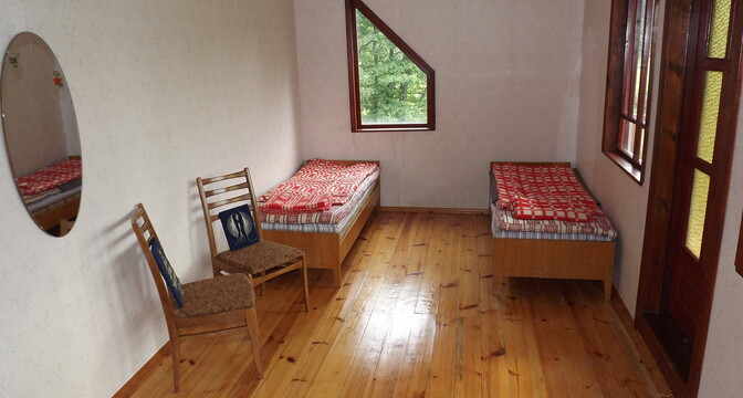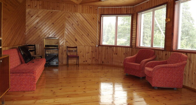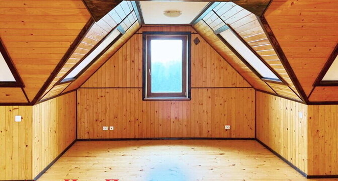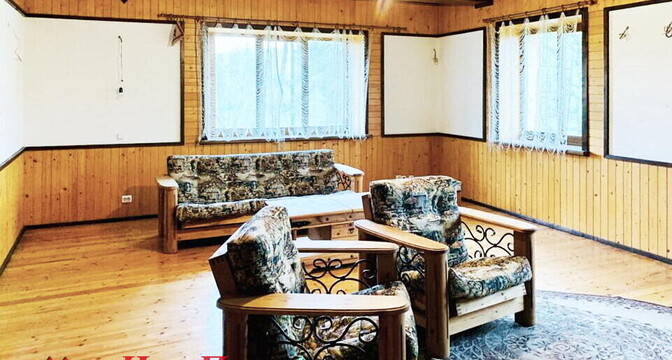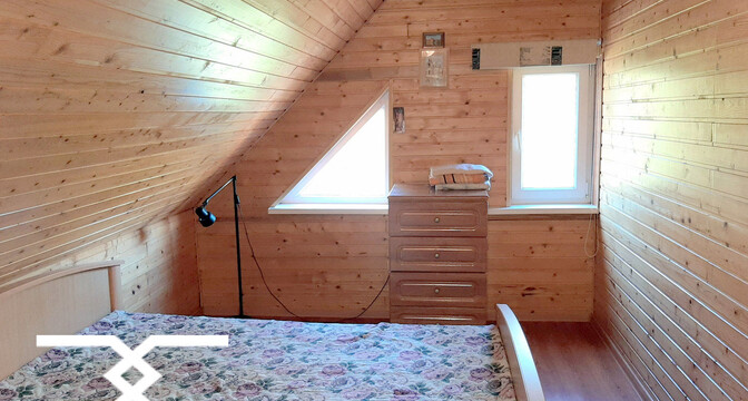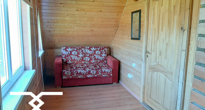 Двухэтажный дом был построен в 1988 году. На первом уровне располагаются кухня-гостиная с камином, коридор и санузел. На втором уровне – 2 комнаты для отдыха. В доме печное отопление, есть скважина, водонасосная установка и два бойлера на 10 и 60 литров. Владельцами был сделан свежий ремонт: вся внутренняя отделка, сантехника, мебель – новые.