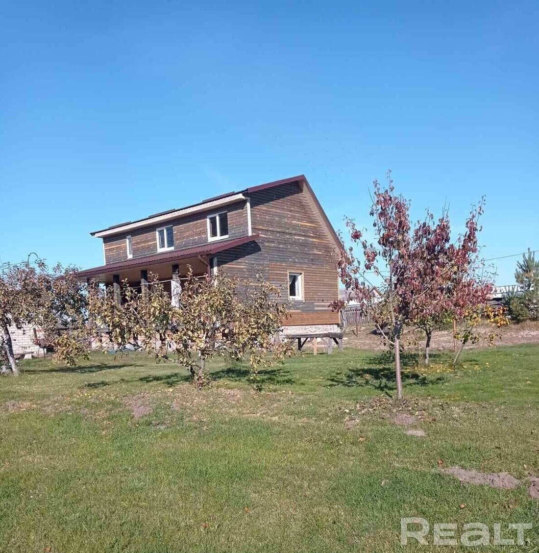 Дом построен из кругляка и в объявлении его готовность оценивают в 99%.