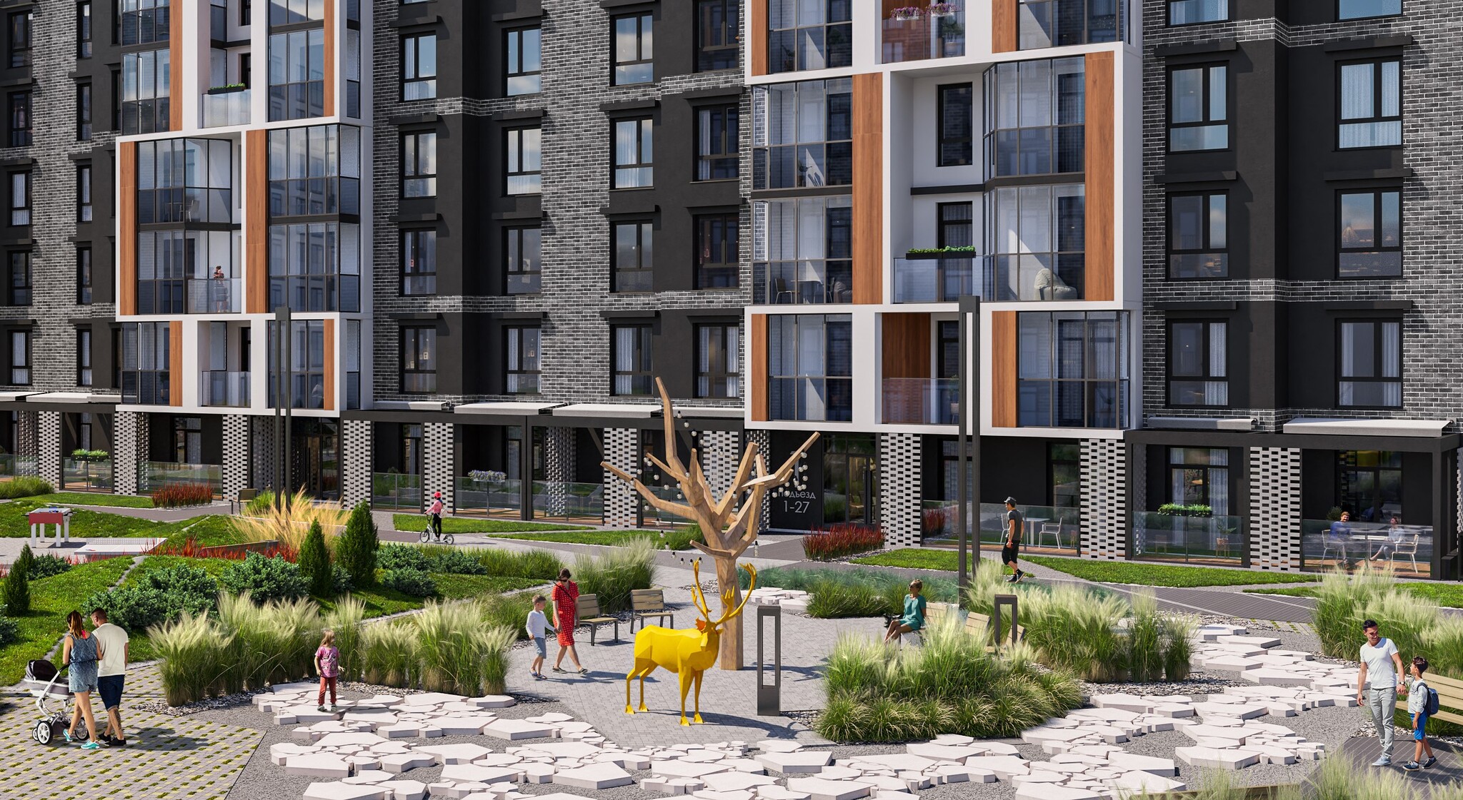- уникальная архитектура: современные фасады, нестандартные квартиры, стильные проходные подъезды и лифты, продуманные дворы и многочисленные малые архитектурные формы;