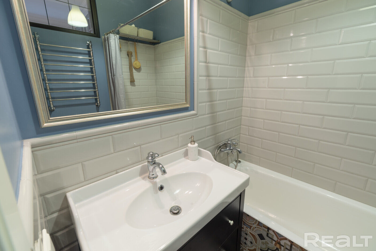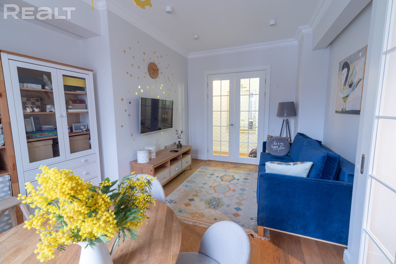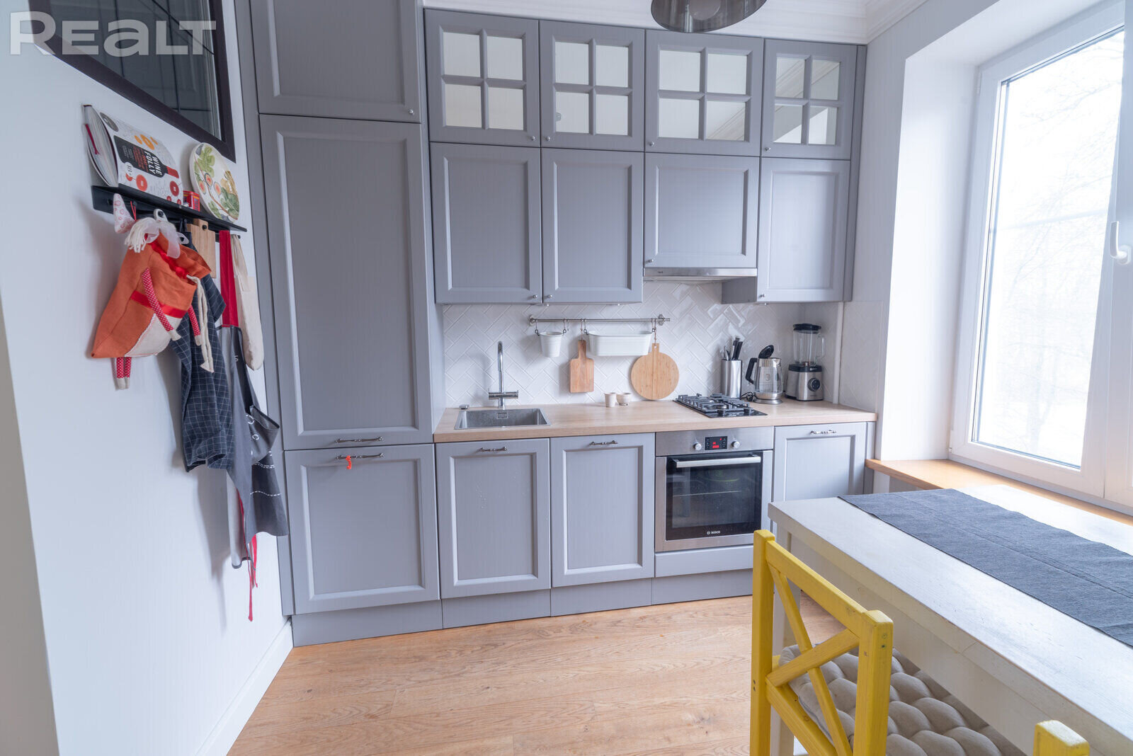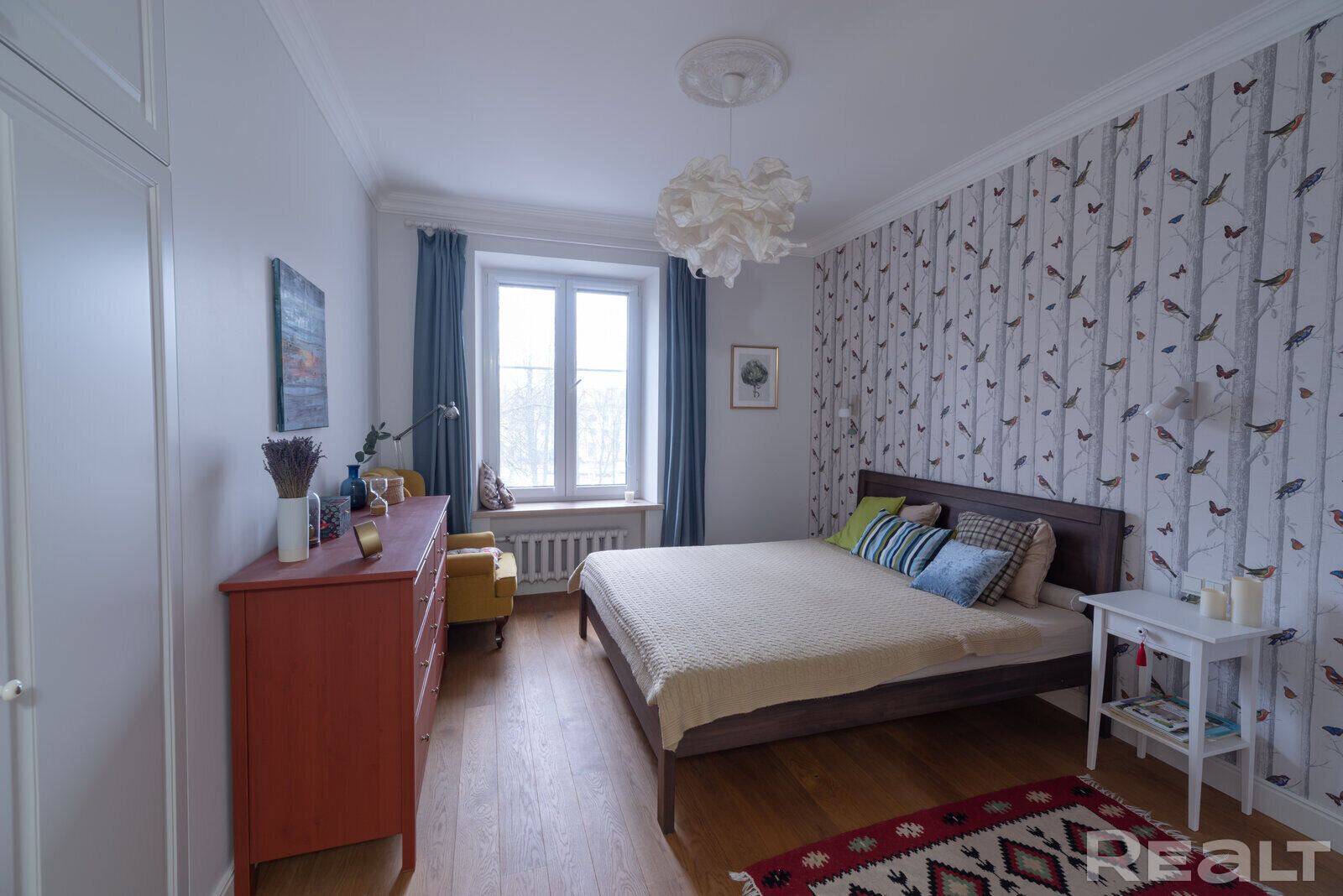Эта квартира располагается по адресу Казарменный переулок, 5А. Рядом протекает Свислочь и возвышается стадион «Динамо». В двушке сделан хороший ремонт в скандинавском стиле. К тому же, буквально вчера эта квартира подешевела на 5 тысяч долларов. Сколько стоит уютная и домашняя сталинка?