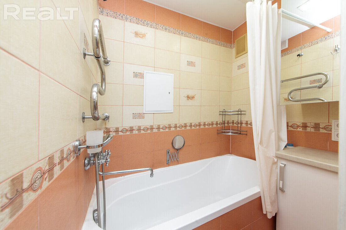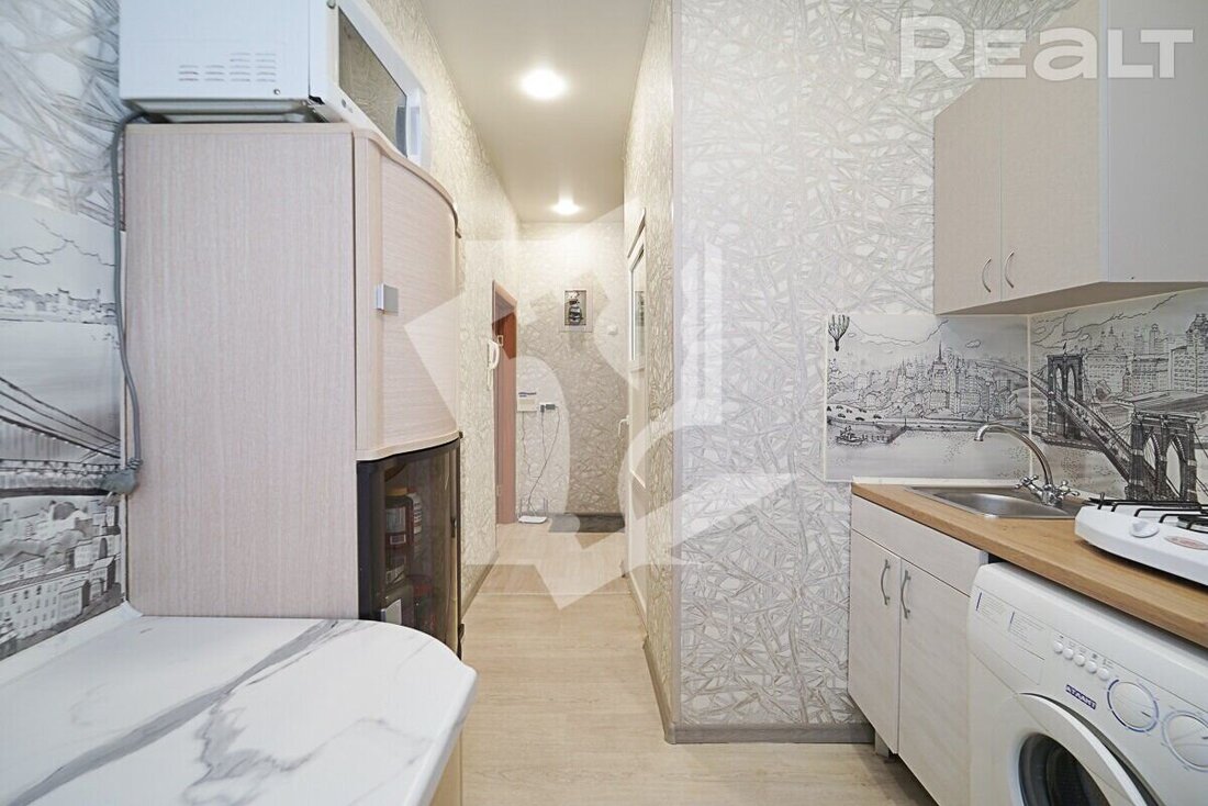 Рядом с домом есть детские сады, школы, рынок, спортивный комплекс и магазины. Важно, что недалеко есть небольшая зеленая зона, а чуть дальше располагается парк Курасовщина.