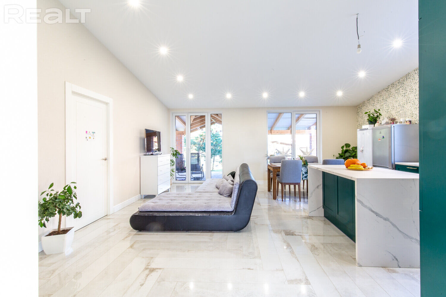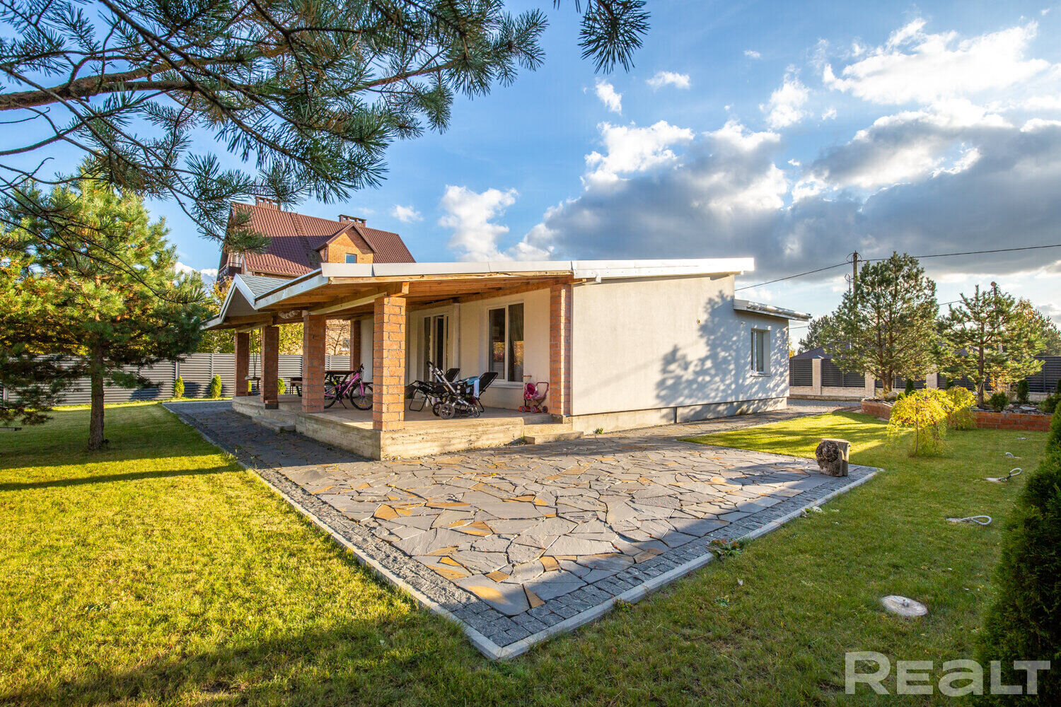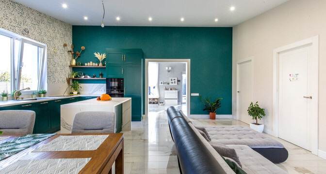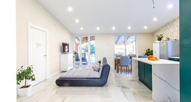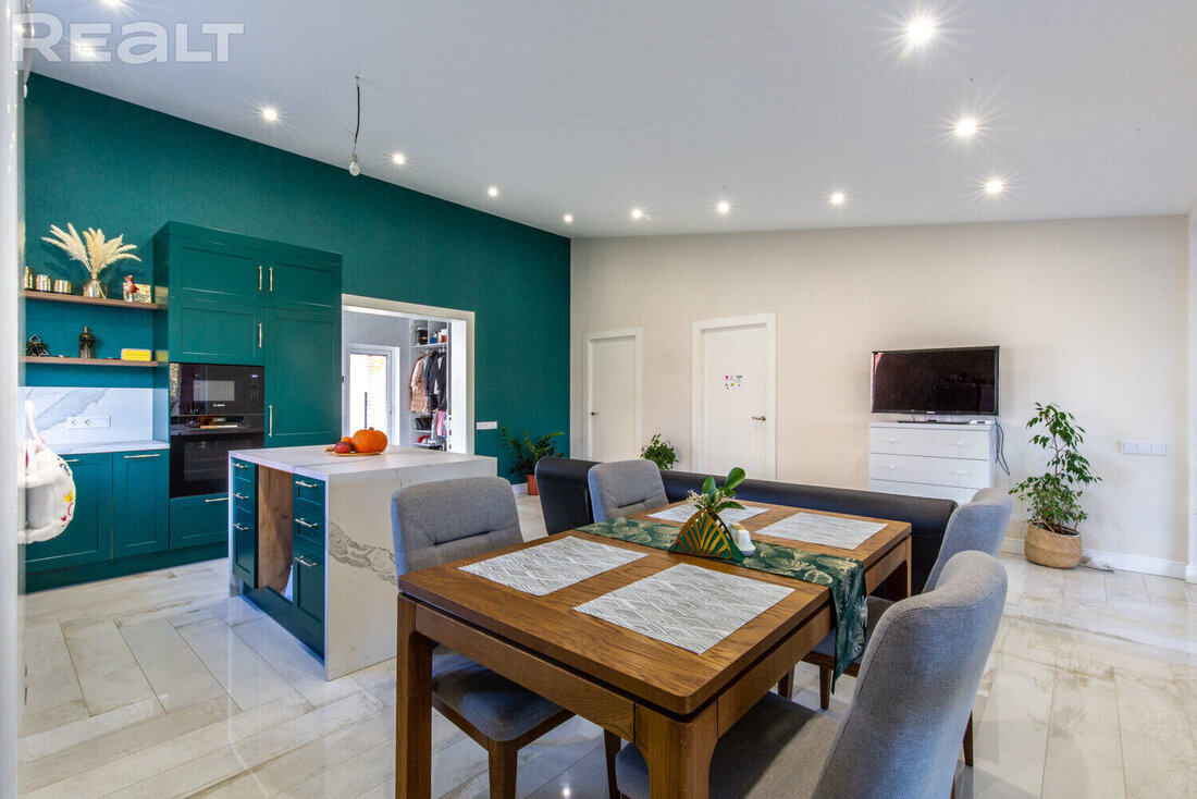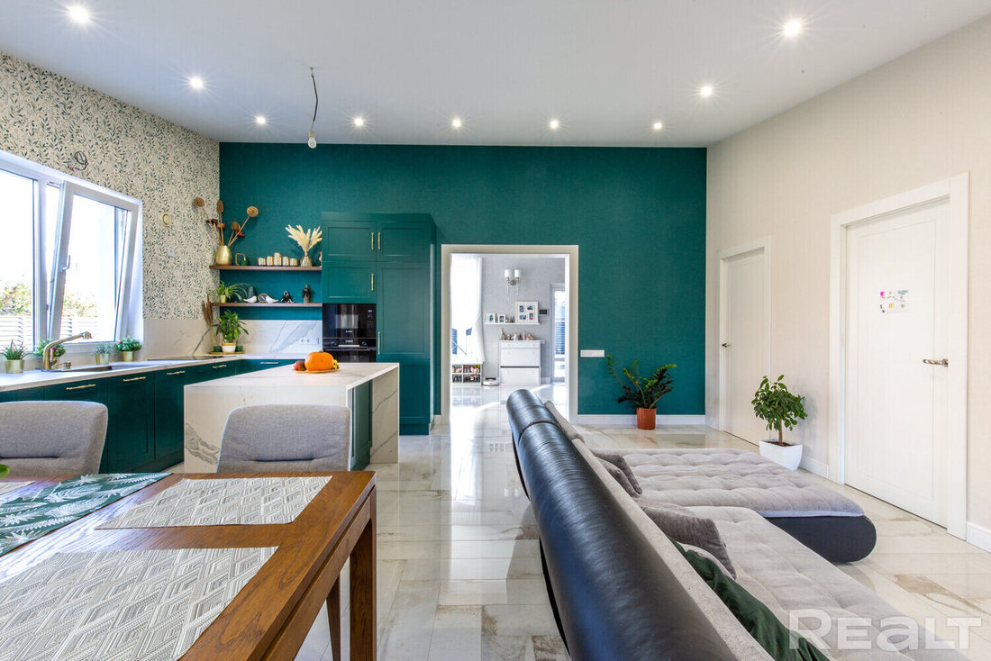 В Колодищах выставили на продажу одноэтажный коттедж с ухоженным участком. Он был построен в 2018 году в соответствии с трендами. Естественный свет заполняет помещения через большие окна, а крытая терраса позволяет уединиться с природой. Внутри сделан качественный ремонт и есть даже нестандартные интерьерные решения. Например, кухня, которая из-за цвета сливается с прилегающей стеной. Как выглядит современный семейный дом и сколько он стоит?