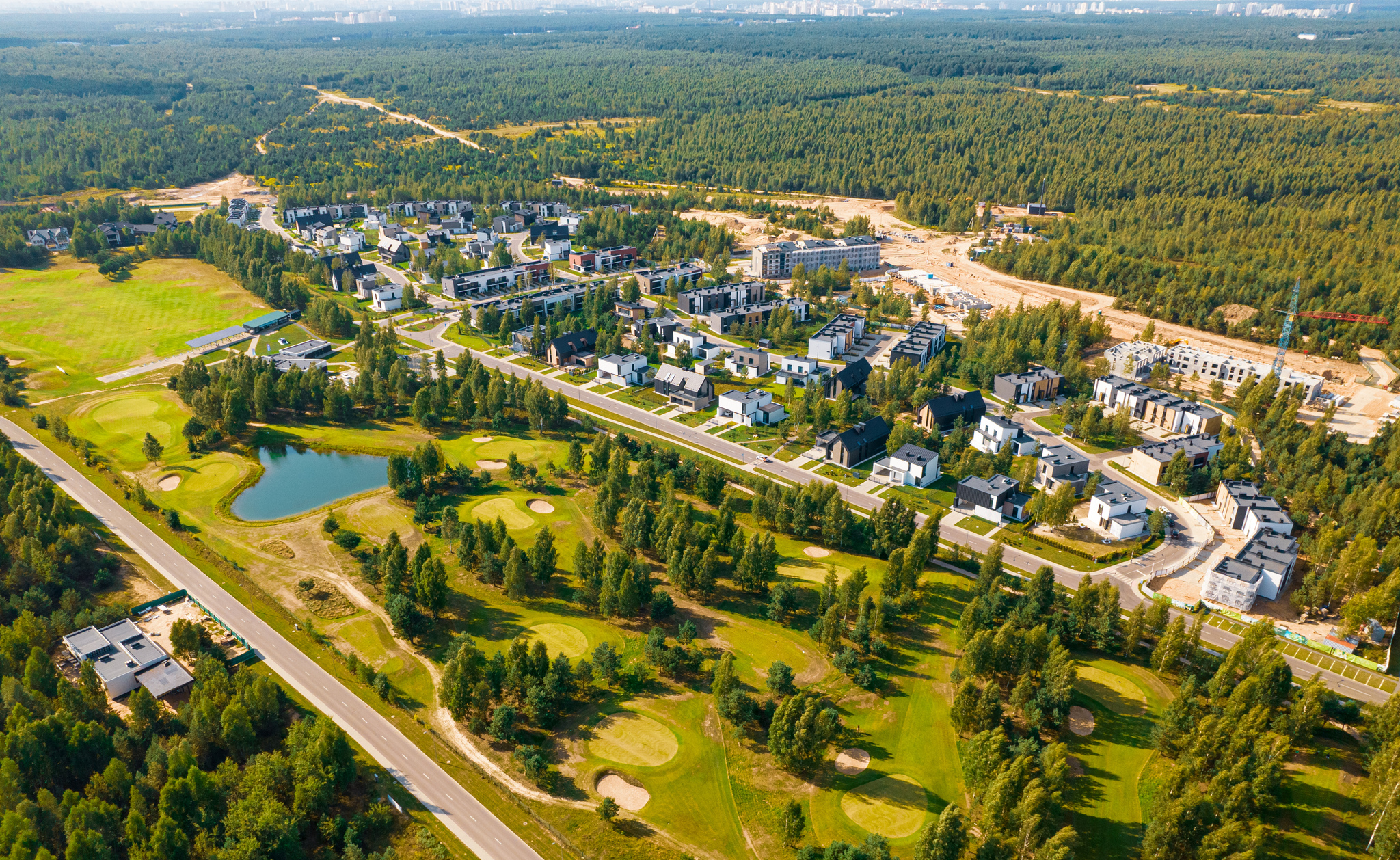 «Зеленая гавань» — жилой комплекс, который возводится на территории 220 га в 3,5 км к востоку от Минска и располагается неподалеку от гольф-полей чемпионского класса. Над концепцией застройки работали архитекторы из Англии, Швеции и Беларуси. Комплекс состоит из коттеджей разных типов с уникальным дизайном фасада, ситихаусов, таунхаусов, урбанхаусов — блокированных домов с двухэтажными квартирами, а также лайнхаусов — коттеджей, соединяющихся в одну линию. Дома аккуратно вписаны в природное окружение. Застройщик «А-100 Девелопмент» старается сохранить как можно больше взрослых деревьев, поэтому дороги, бульвары и аллеи прокладываются прямо среди леса. Параллельно с жилой застройкой строится и инфраструктура: предусмотрены детский сад, школа, амбулатория, магазины, торговый и спортивный центры, детские и спортивные площадки, зоны отдыха.