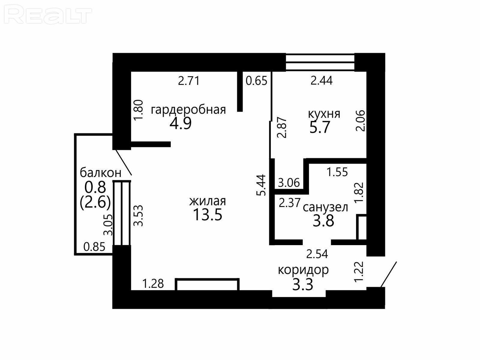 Площадь квартиры — 31,2 квадратного метра. Площадь кухни — 5,7 метра. Санузел — совмещенный, балкон — не застеклен.