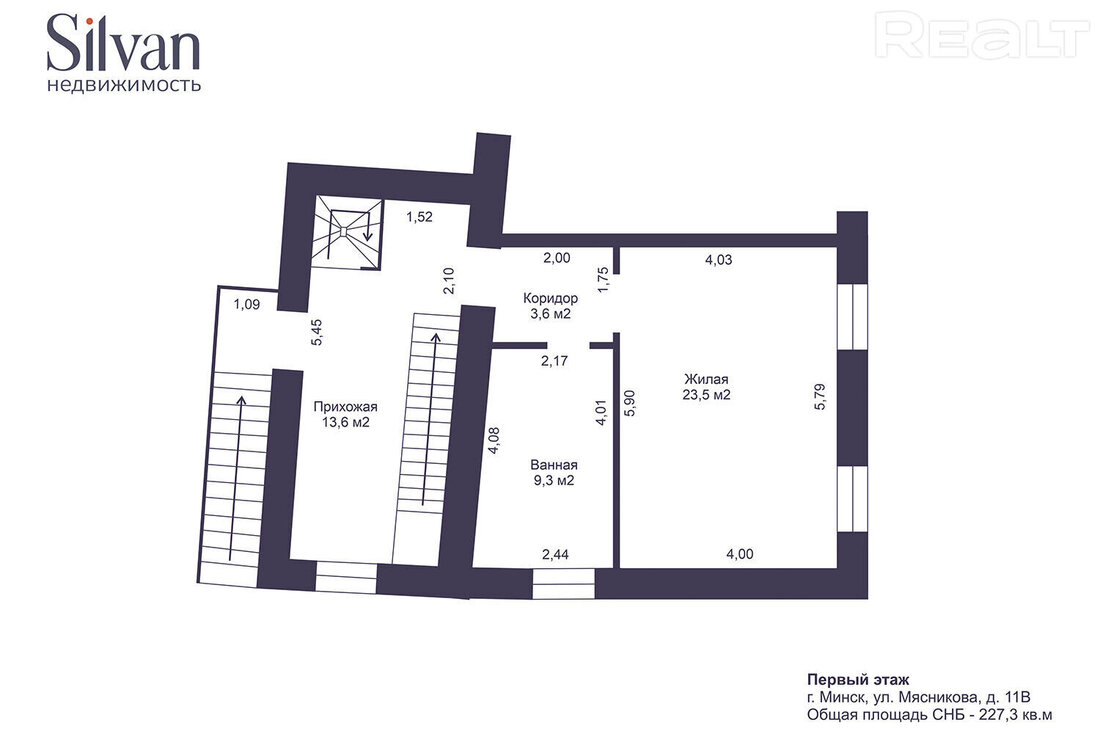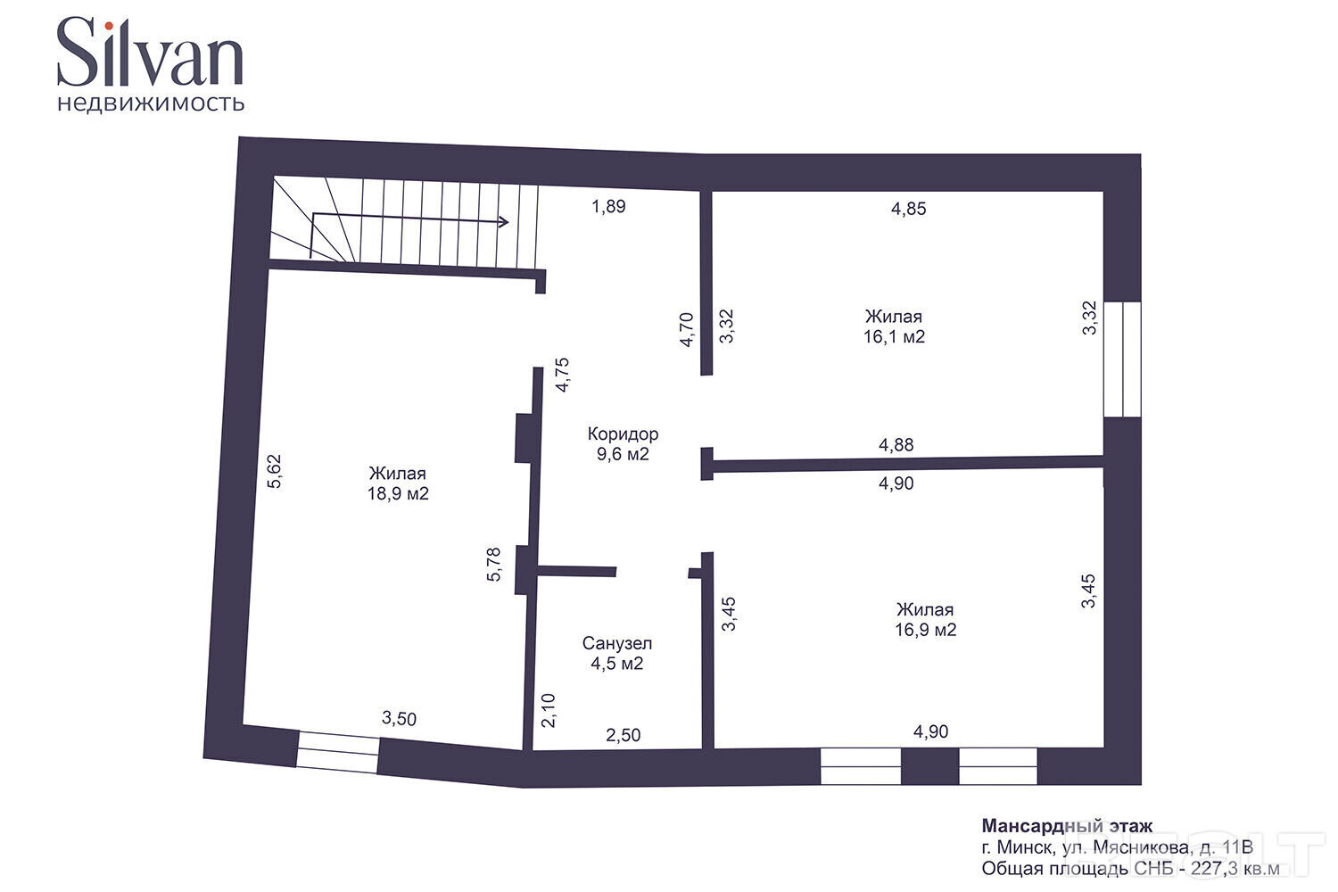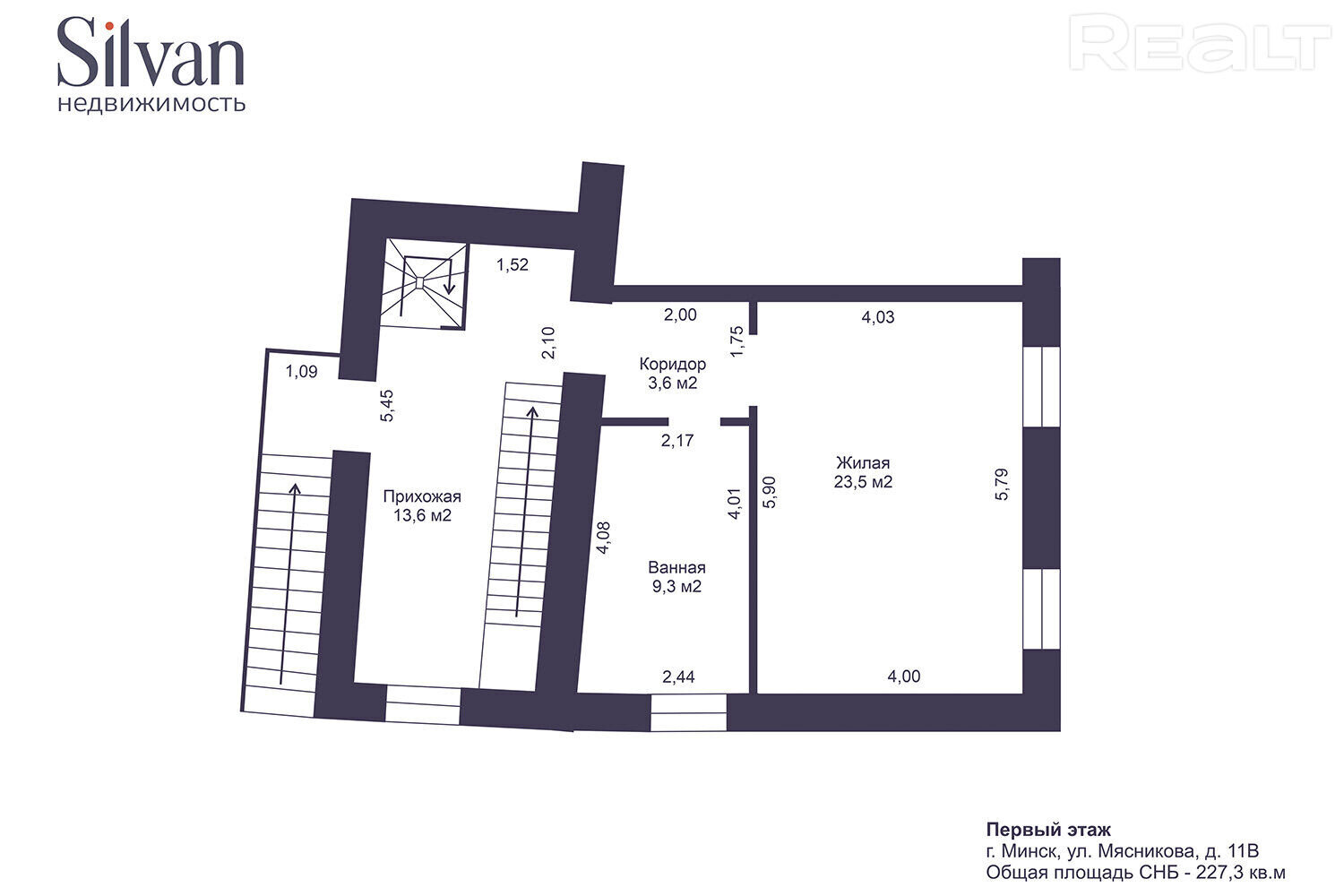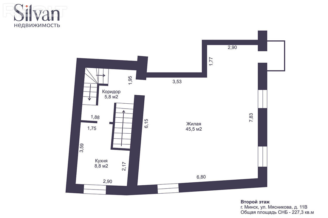 Таунхаус расположен в двухквартирном четырехэтажном доме кирпичном доме 1898 года постройки, в котором в 1995 году была реконструкция. Адрес — Мясникова, 11 В. Вот этот дом на карте: