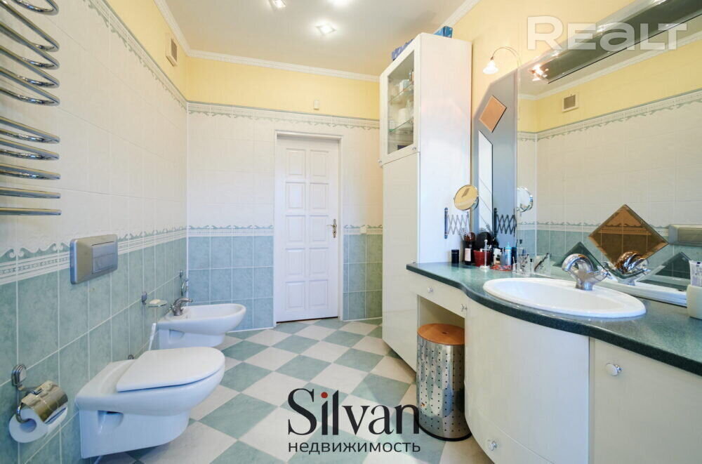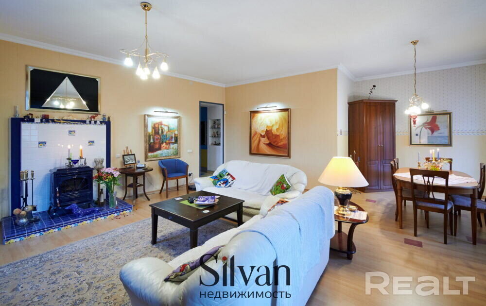 Общая площадь четырехэтажной квартиры — 227 квадратных метров. Стены из красного кирпича толщиной 60 сантиметров. Перекрытия — монолитные. Кровля — черепица.