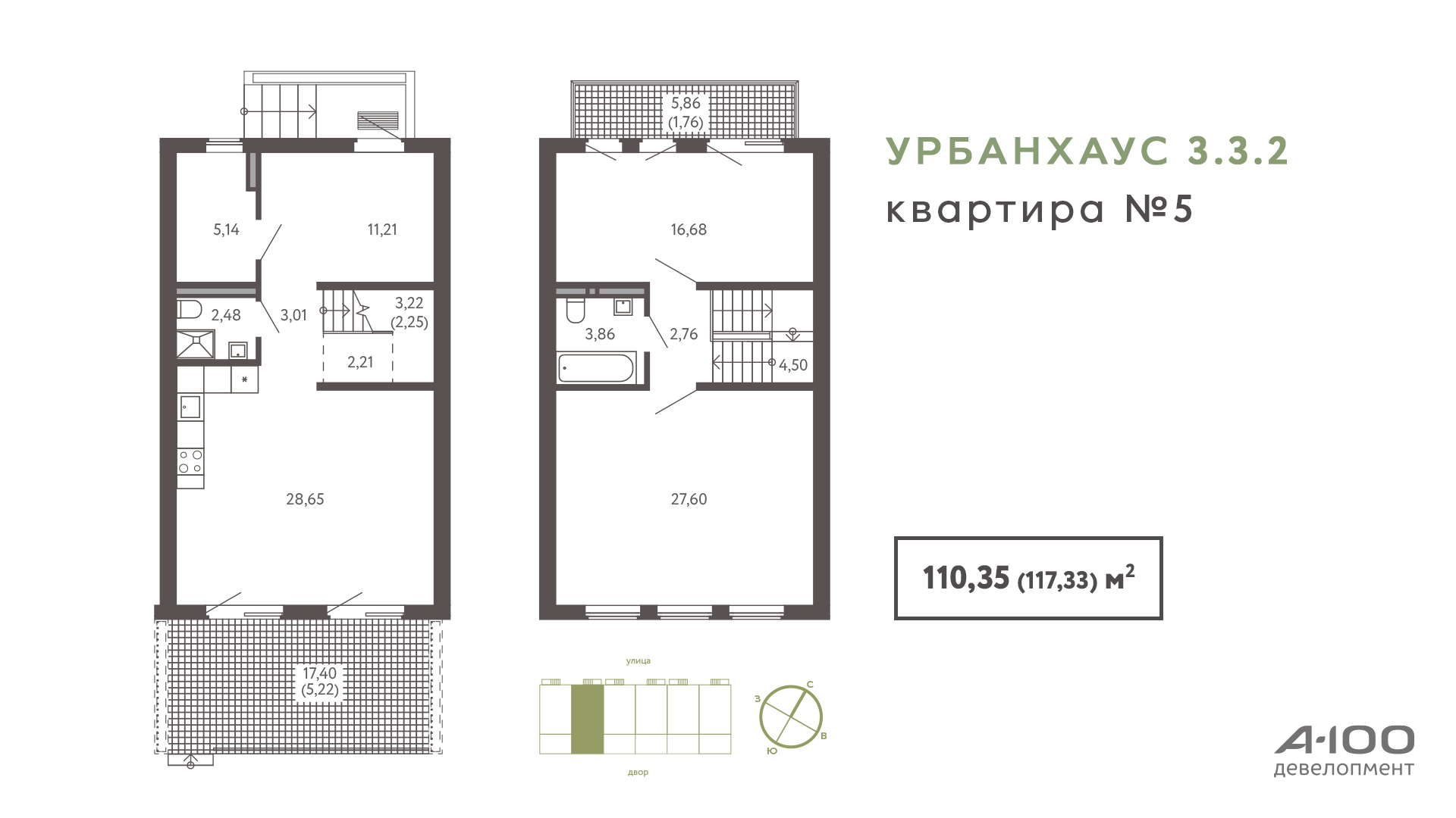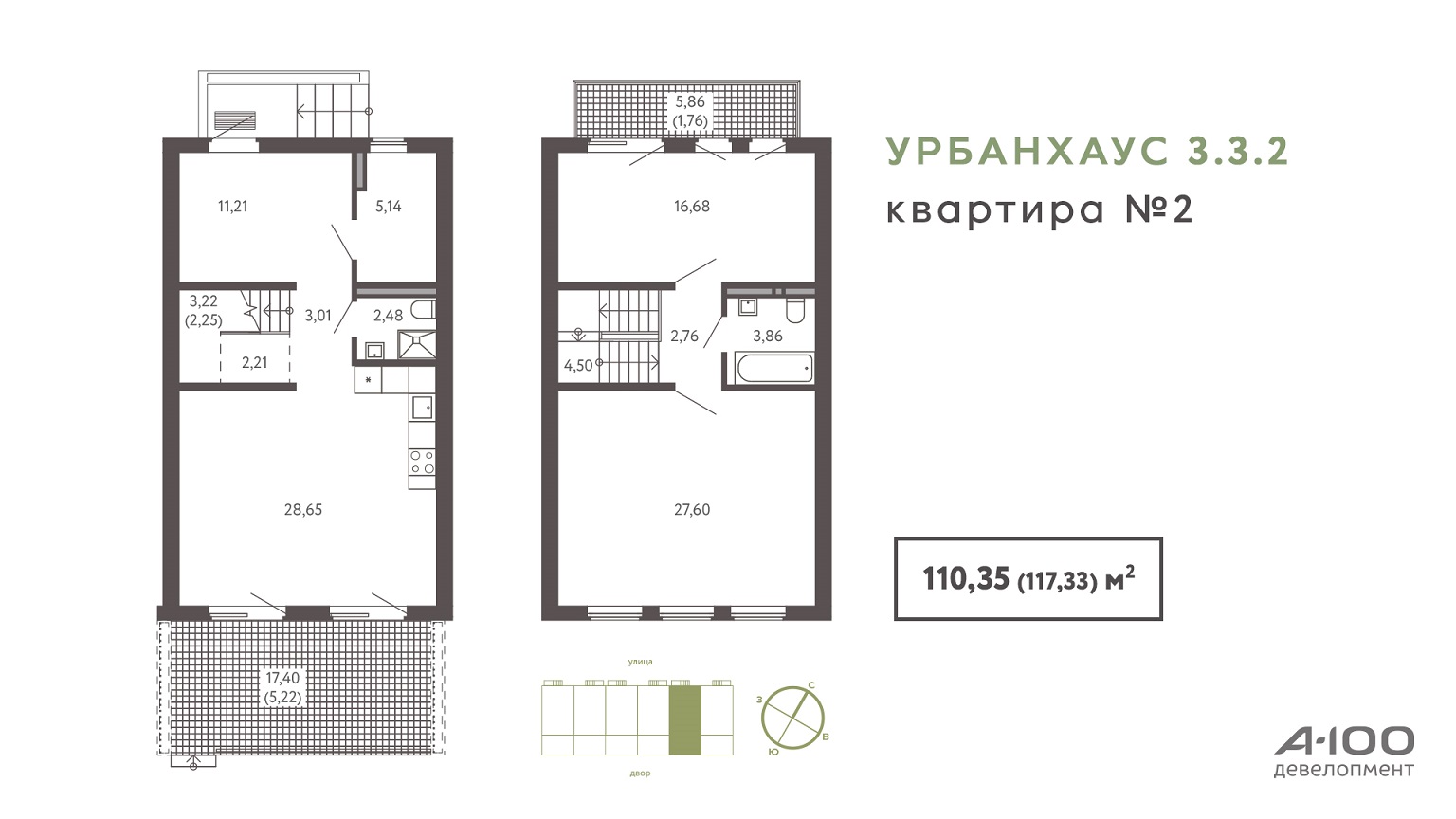 Первый урбанхаус в «Зеленой гавани» представили в прошлом году, и сегодня свободных апартаментов здесь почти не осталось. Новый дом будет похожим: шесть двухэтажных квартир площадью около 110 м2, каждая из которых имеет два выхода: на улицу и во двор через просторную террасу площадью более 17 м2. Покрытие террасы выполнено из керамогранита.