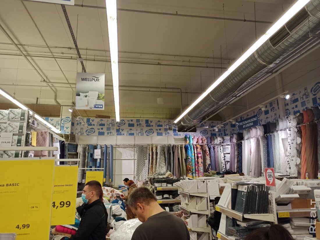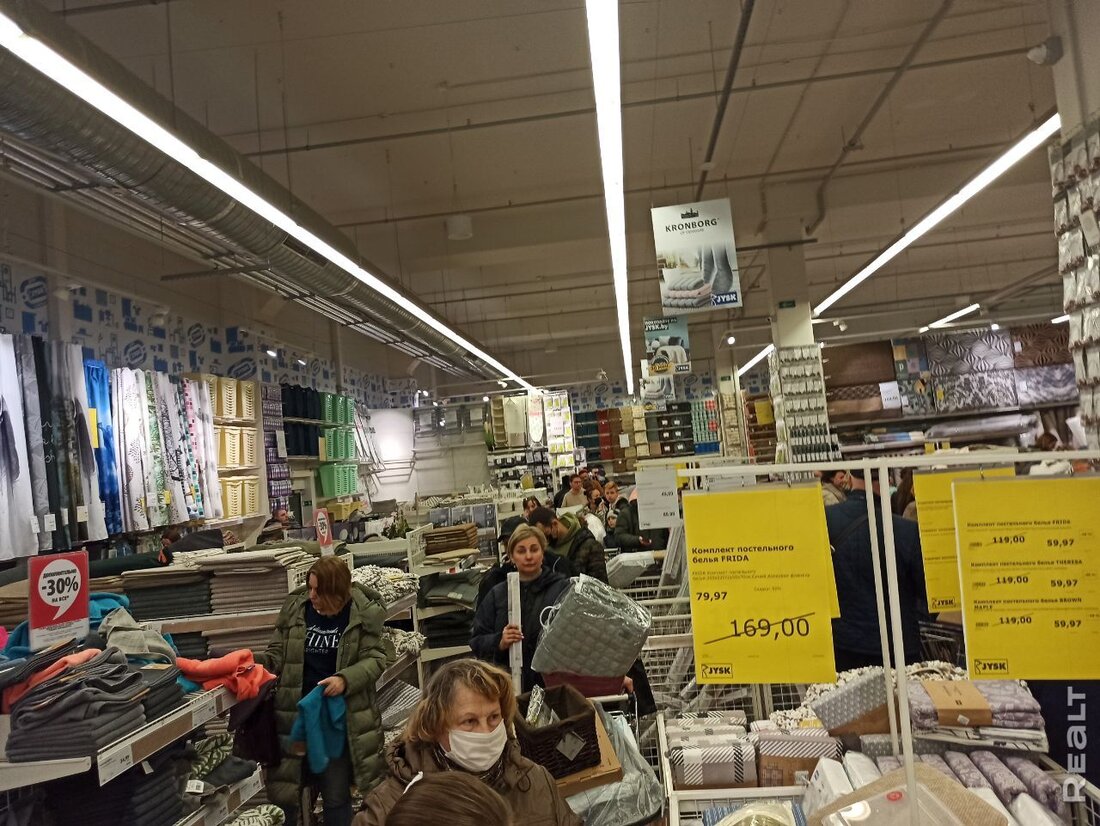 Вчера мы побывали в магазине датского ритейлера товаров для дома JYSK, который заявил о приостановке работы сети в Беларуси с 18 апреля. Был ажиотаж на все. Сегодня же людей в JYSK на Каменногорской стало еще больше.