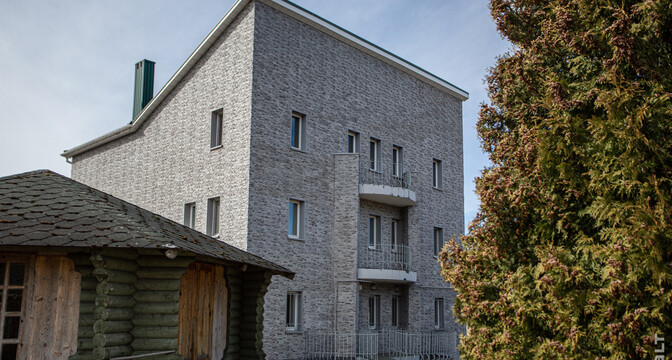 На просторном участке площадью 50 соток есть гостевой бревенчатый дом с террасой и мансардными окнами в 200 «квадратов». Здесь тоже можно жить круглый год. Именно поэтому предложение подойдет семье в несколько поколений, членам которой важно жить рядом, но иметь много личного пространства для каждого человека.