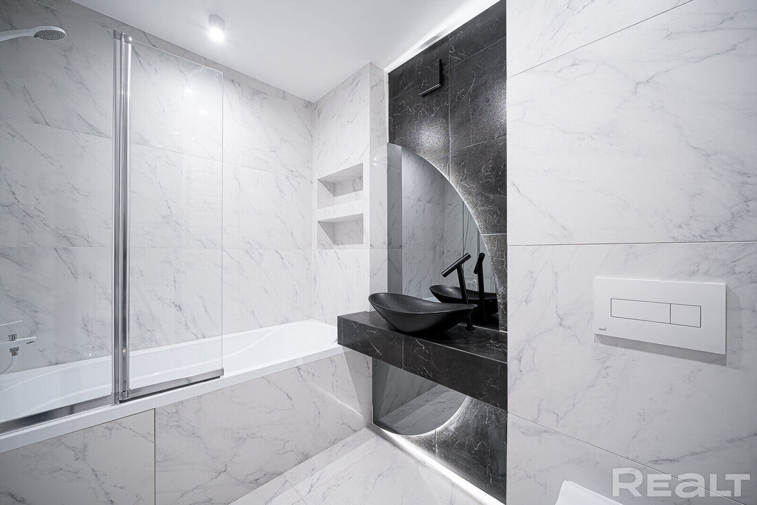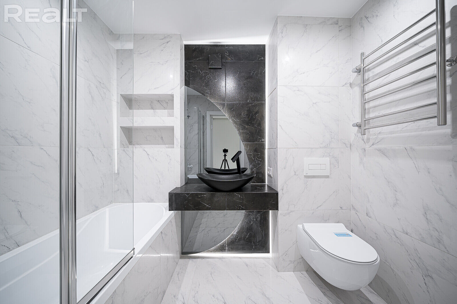Двухкомнатная квартира располагается на 9 этаже 17-этажного дома по адресу улица Богдановича, 132. Общая площадь квартиры — 57, 5 м² с кухней в 15, 63 м².