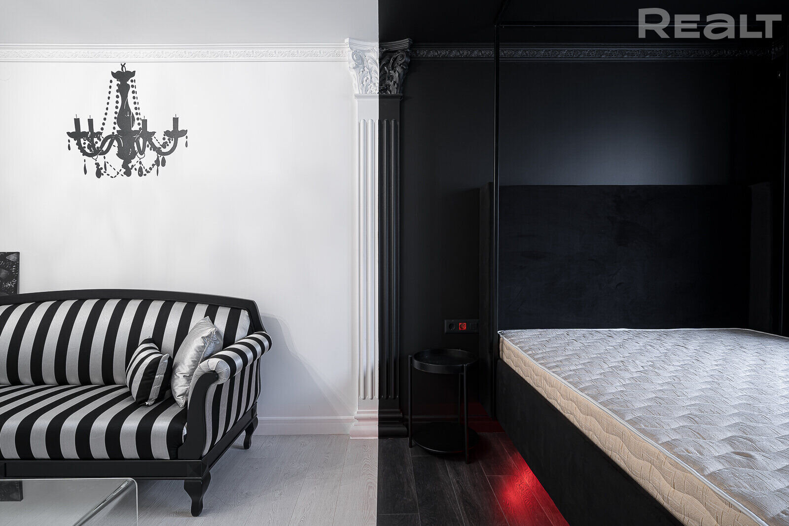 Черная спальня с красной подсветкой. Посмотрите, какую интересную квартиру продают в Минске