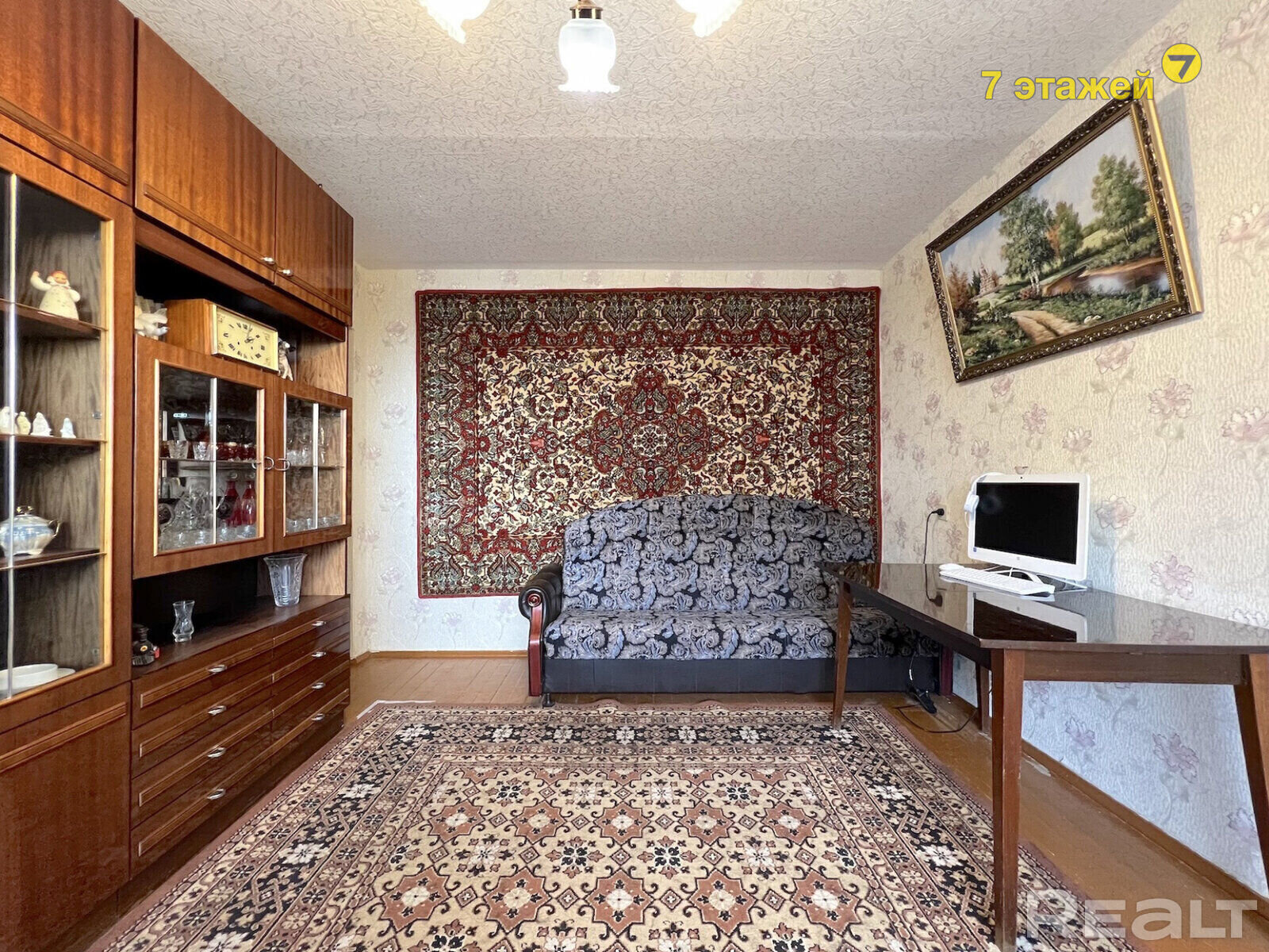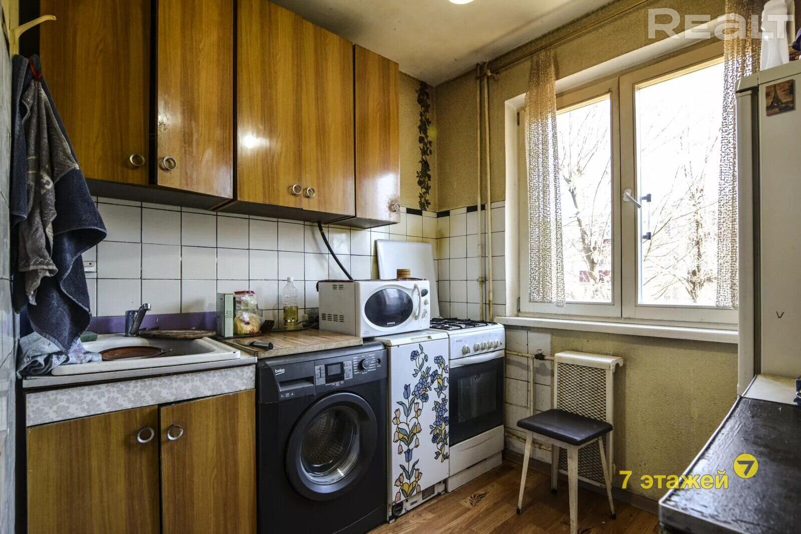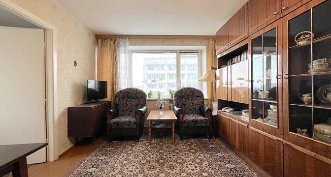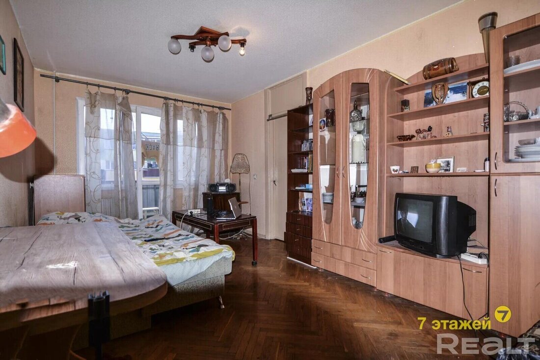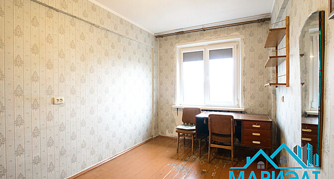 Ремонт квартире необходим. Возможно, найдутся ценители, которые сохранят в квартире старый паркет. Владельцы оставляют покупателям и мебель, и бытовую технику. В квартире есть балкон и совмещенный санузел.