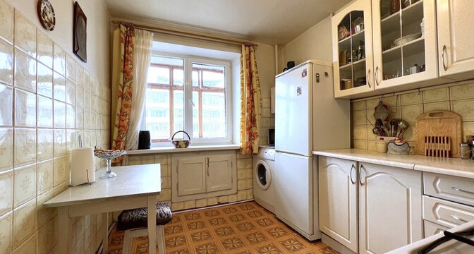 Дом, в котором продается квартира, находится на Харьковской, 80к2. Он был построен в 1962 году, а последний капремонт был в 2011-м. Общая площадь квартиры - 57 "квадратов". Кухня занимает 5,7 м².