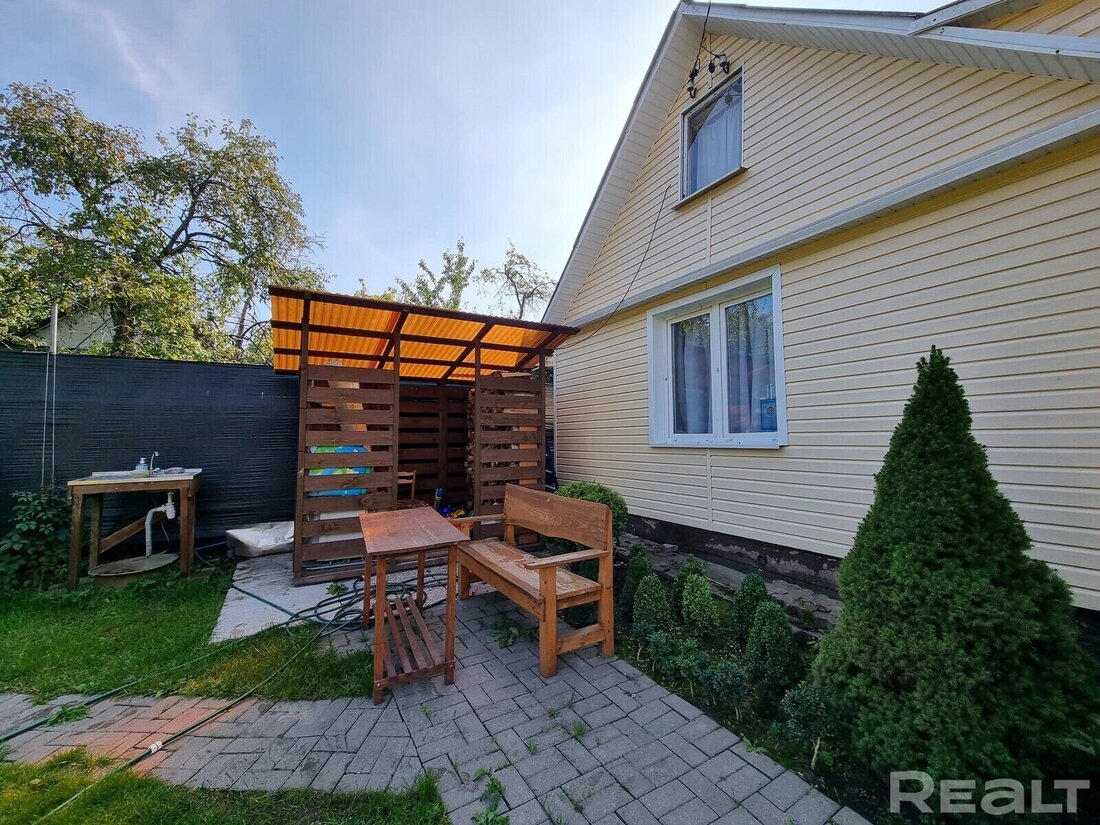 Дача компактная, на 60 м2. Выглядит свежо и современно — в 2008 году владельцы провели масштабную реконструкцию дома. Его можно рассматривать как вариант для постоянного проживания — к нему подведены газ и городской телефон, есть санузел.