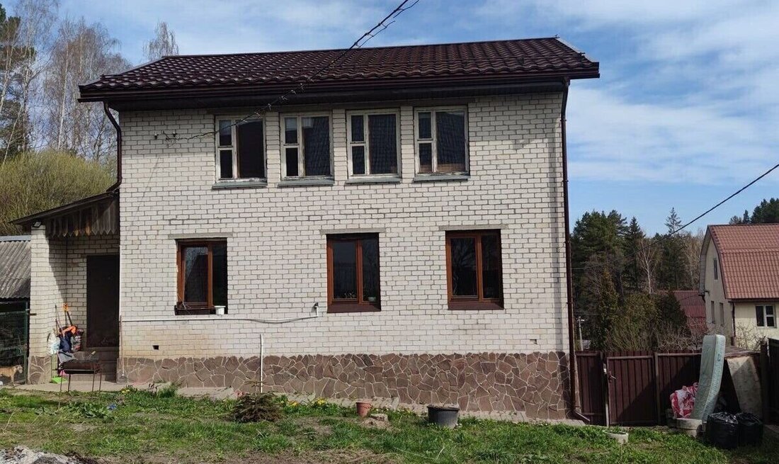 Первая представляет собой двухэтажный дом на 97,3 м2. Стены из кирпича, крыша шиферная. СТ газифицировано, есть сезонный водопровод (вода введена в дом). Отопление печное. Внутри 6 комнат, интерьер «дачный».
