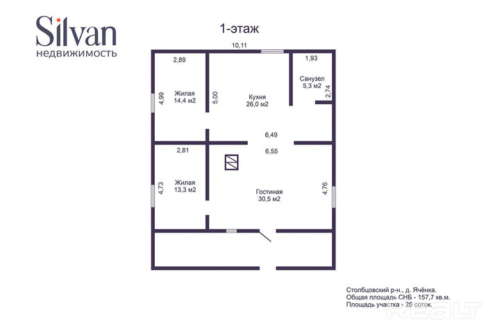Дом из бруса в два этажа был построен в 2012 году в деревне Яченка Столбцовского района в 70 км от МКАД в направлении Бреста. Общая площадь объекта — 157,7 м².