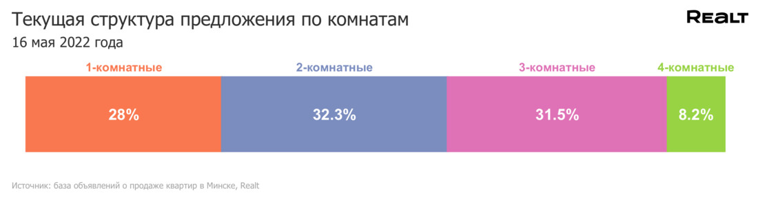 Число объявлений выросло по всем сегментам, в особенности у 3- и 1-комнатных квартир - на 2% в обоих случаях.