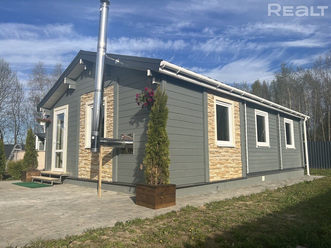 Деревянный дом находится в 45 км от МКАД в СТ «Технолог» в Дзержинском районе. Дача располагается у зеленой зоны, в дальней части товарищества. Она была построена из сруба в 2021 году. Общая площадь одноэтажного дома составляет 70 квадратных метров.
