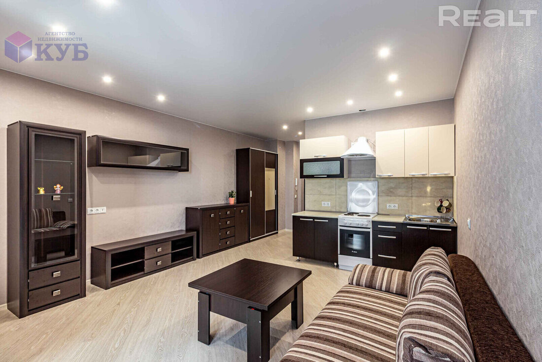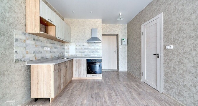 В квартире сделан свежий ремонт. В ней еще никто не проживал. Жилая комната спланирована в формате студии с выделенной кухонной и жилой зоной. Установлен кухонный гарнитур с необходимой встроенной техникой, имеется фартук-плитка. Санузел и ванна облицованы плиткой.