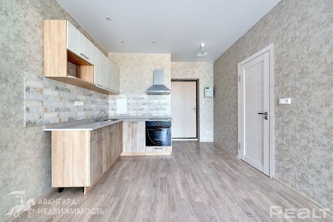 Блочный дом 2017 года постройки находится недалеко от станции метро «Уручье» по адресу улица Николая Михайлашева, 1. Квартира располагается на 9 этаже и занимает 27,8 м².