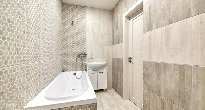 В квартире сделан хороший ремонт, она укомплектована мебелью и техникой: стиральной машиной, холодильником, духовым шкафов и варочной поверхностью. Здесь же есть и лоджия, и балкон. А в совмещенном санузле установлена ванна.