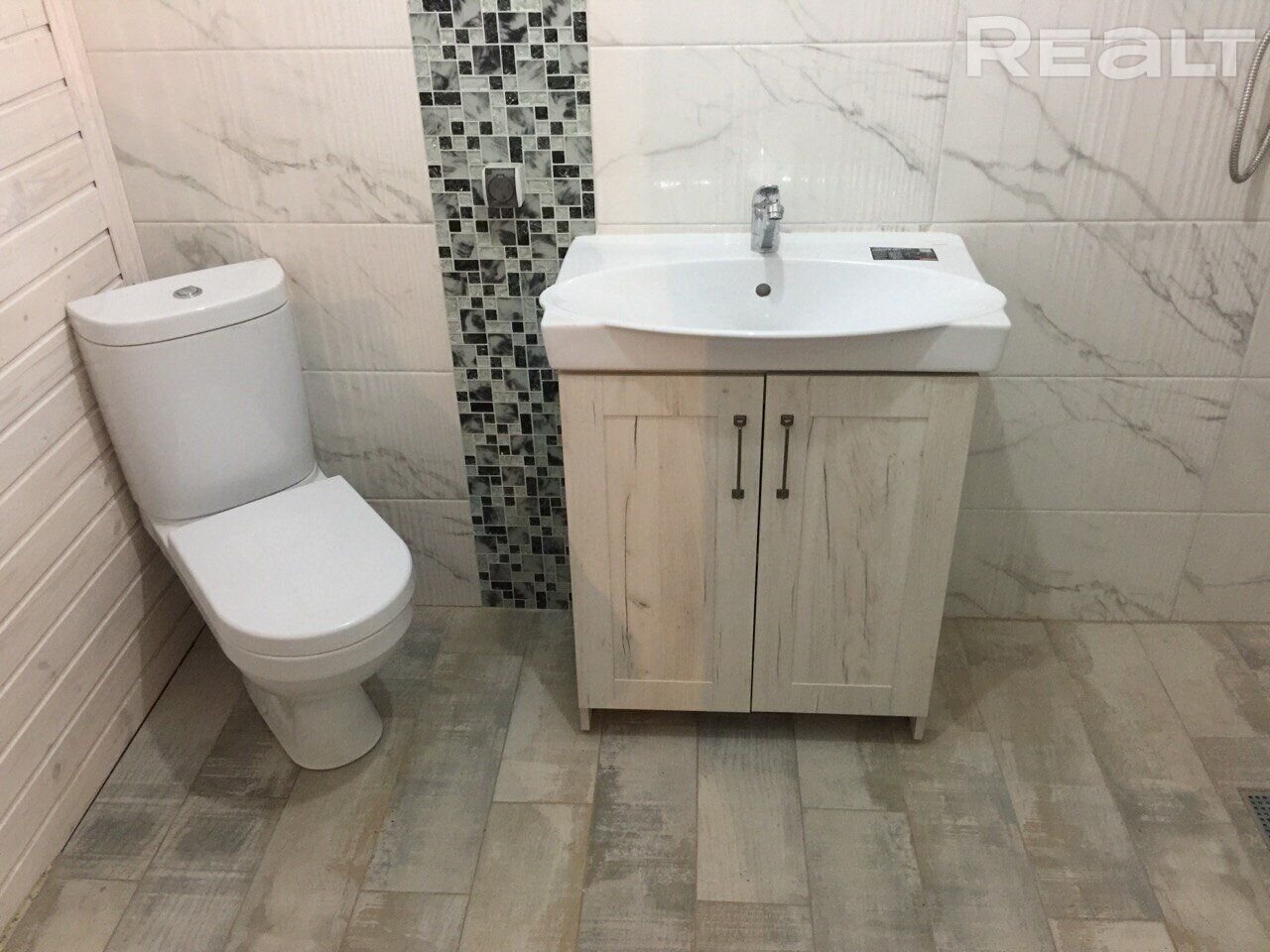 В доме сделан ремонт, есть мебель и сантехника. Он полностью готов для проживания. Из объявления неизвестно, сколько жилых комнат, но мансардный этаж, судя по фото, представляет собой единое пространство.