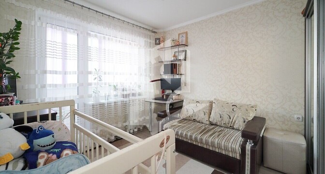 Проход в спальню осуществляется через кухню. В квартире остаются мебель и бытовая техника.