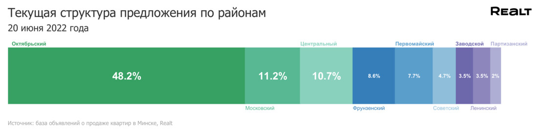 Увеличение числа предложений отмечалось во всех районах за исключением Первомайского. Самый ощутимый рост (2,0 — 2,5%) произошел в Октябрьском, Московском и Партизанском районах.