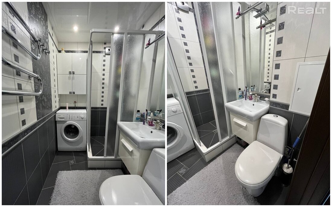 В квартире раздельный санузел. Коридор довольно большой, поэтому здесь без труда поместилась стиральная машина. Балкона в однушке нет.