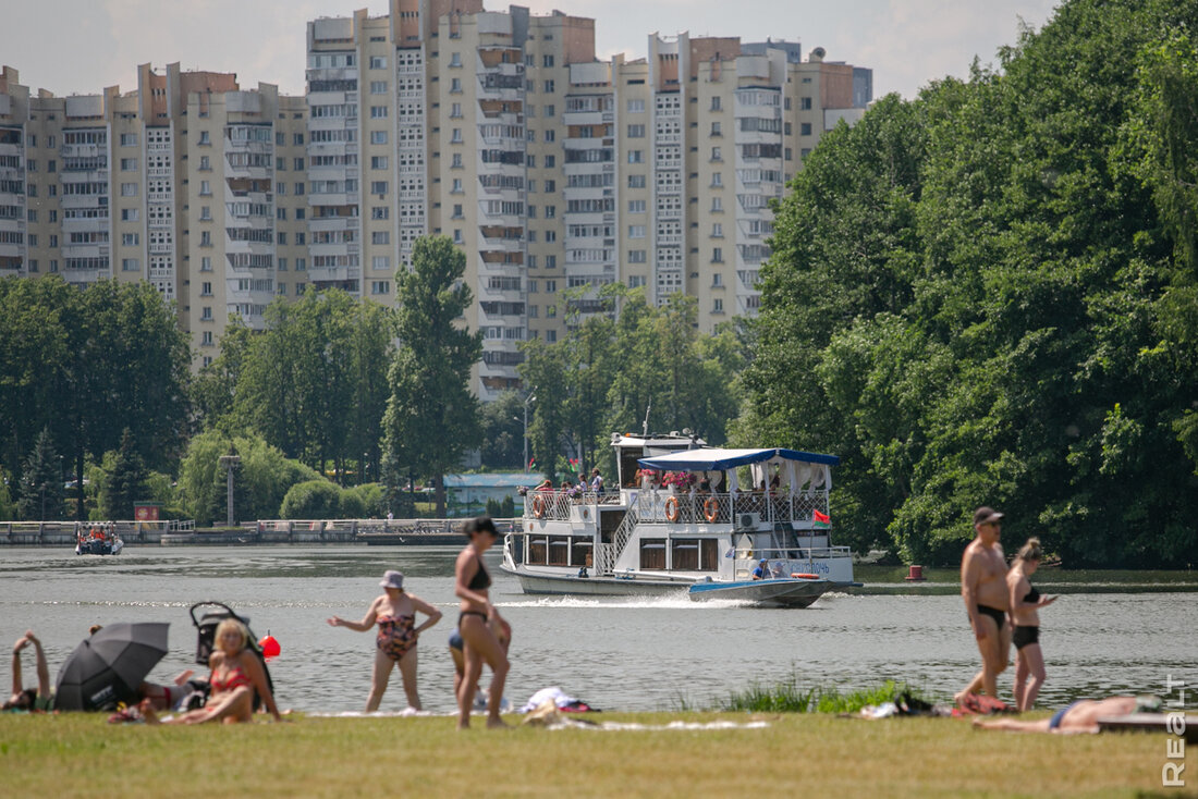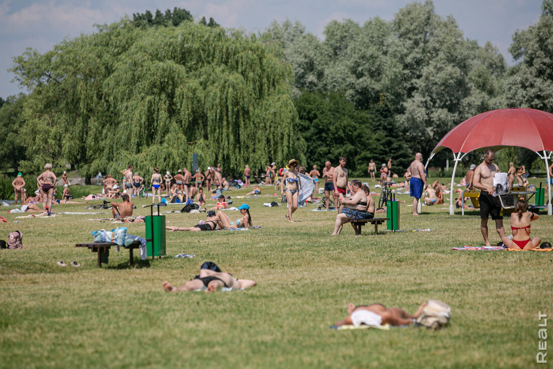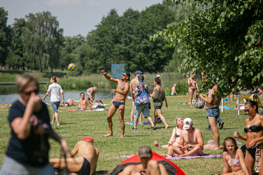 В Беларуси уже несколько дней стоит жара, и в ближайшие дни сильно холоднее не станет. Поэтому многие рванули к водоемам. Мы решили посмотреть, сколько людей сейчас у воды на пляже в центре Минска — на Комсомольском озере.