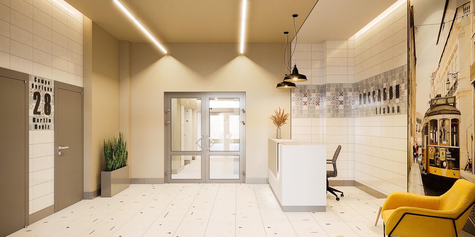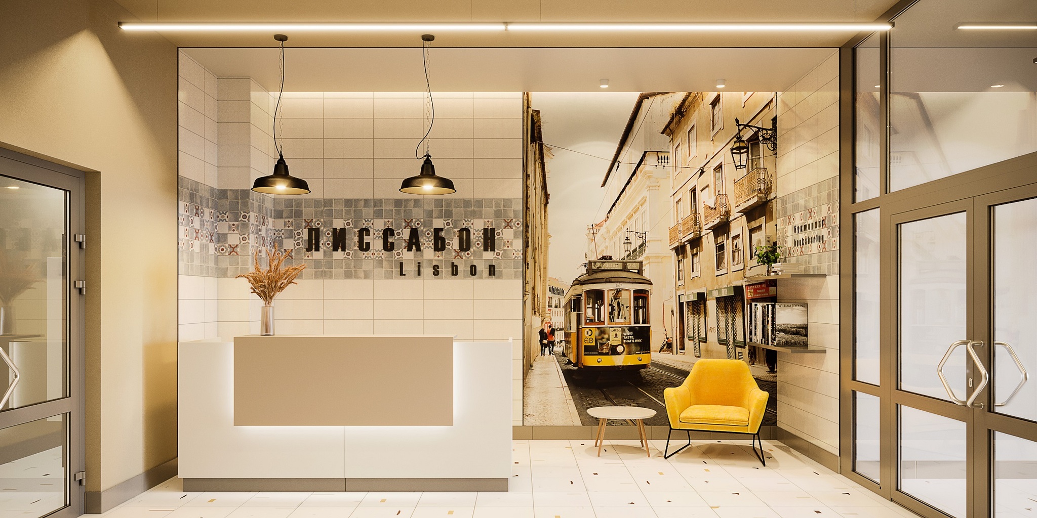 Дом «Лиссабон», последний из высотных акцентов квартала «Западная Европа», о котором мы хотим вам сегодня рассказать, окунет вас в атмосферу уютных и узеньких португальских улочек, разделенных трамвайными путями. Вы увидите легендарный трамвай № 28, который курсирует больше столетия через исторический центр Лиссабона от Martim Moniz до Campo de Ourique.