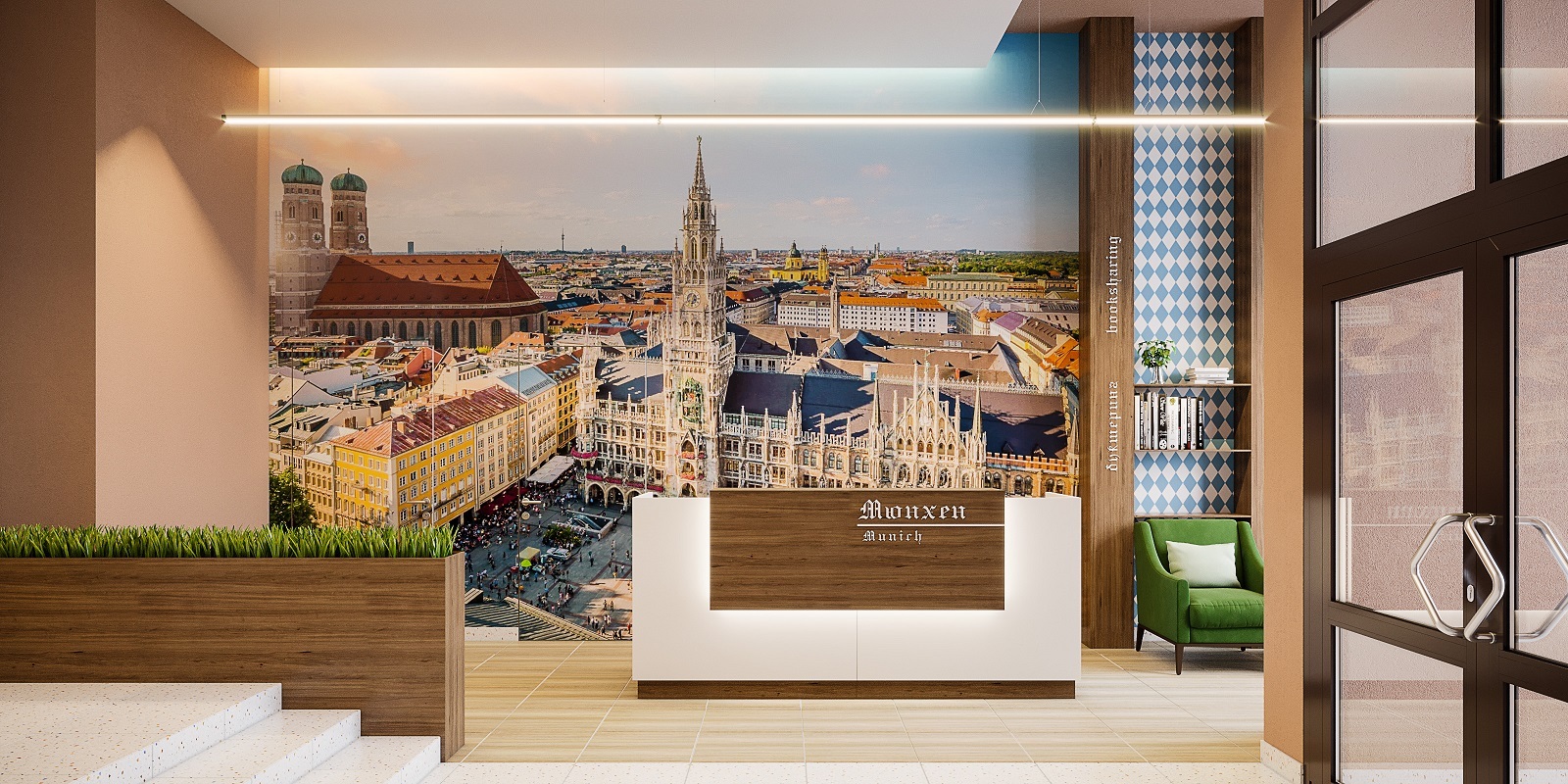 В 25-этажном односекционном доме «Мюнхен» вашему взору откроется красивая картина Новой ратуши, созданной в XIX столетии в неоготическом стиле. Перешагнув порог дома, названного в честь столицы Баварии (ФРГ), вы увидите эти архитектурные красоты так, как если бы стояли на смотровой площадке церкви Святого Петра.