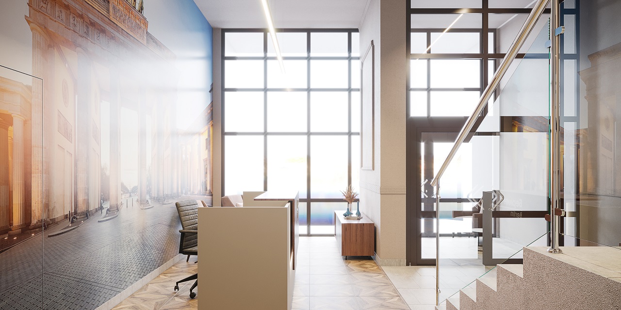 В доме «Берлин» вы увидите эксклюзивное лобби, на котором запечатлены легендарные Бранденбургские ворота, возведенные по приказу Фридриха Вильгельма II в 1789—1791 годах. Их появление ознаменовало начало эпохи Классицизма.