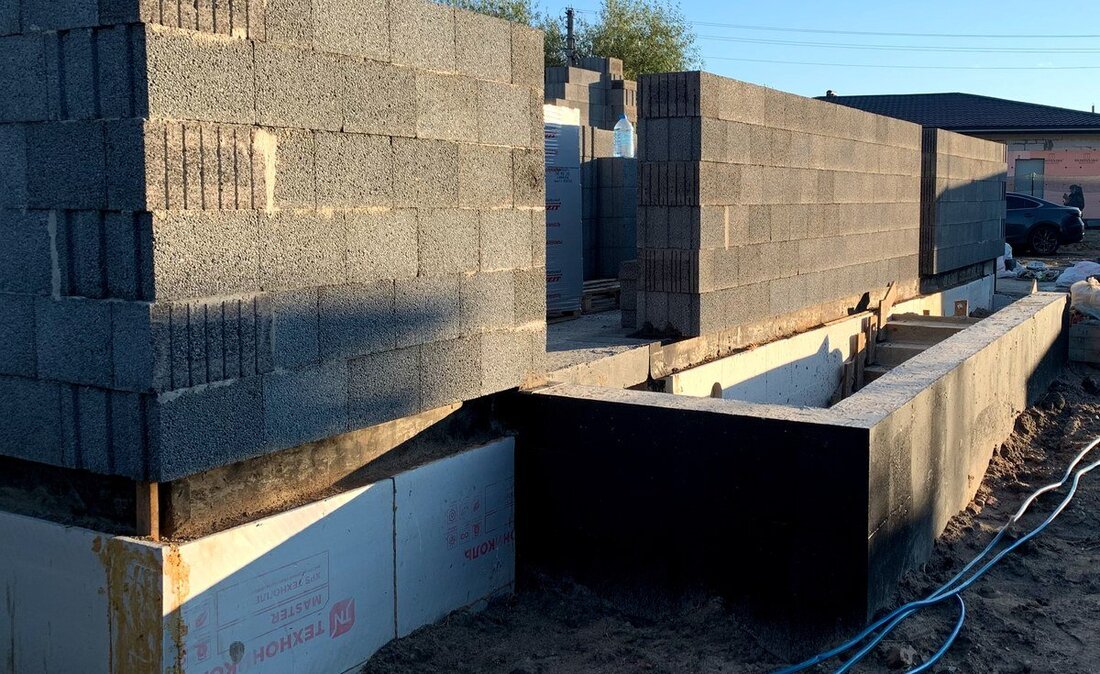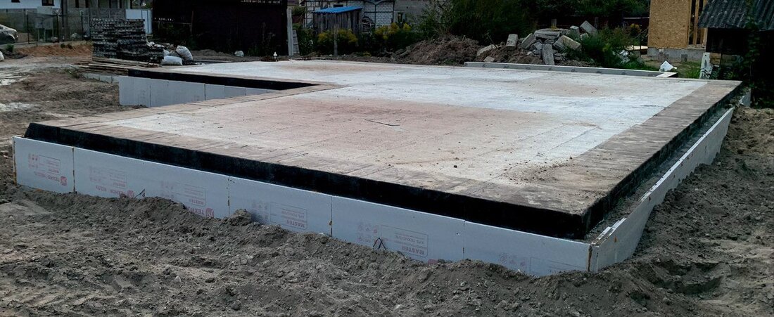 Армирующий металлический каркас, бетон, утепление и гидроизоляция — толщина стен под гаражом получилась 250 мм, под домом — 350/400. Мы сразу залили бетонную подушку, которая стала черновым полом. Сверху, соответственно, — монолитная плита, служащая полом для первого этажа. Уже тогда знакомые, которые видели процесс стройки, смеялись: «Настоящий бункер!»