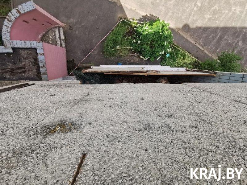 Надежда Александровна Храмцевич живет на первом этаже дома, в котором рухнул балкон. Рассказывает, что слышала, как упало балконное ограждение, и даже называет время — один час 35 минут. Хотя, признается, не сразу поняла, что произошло.