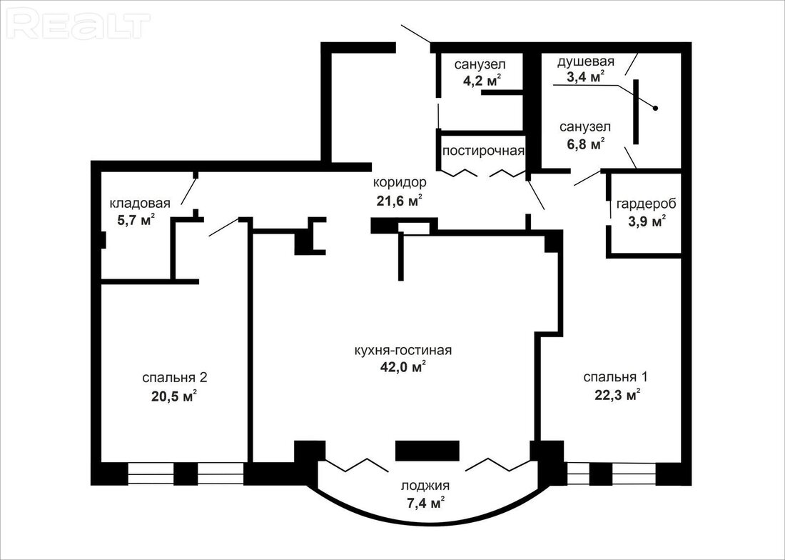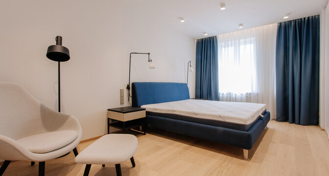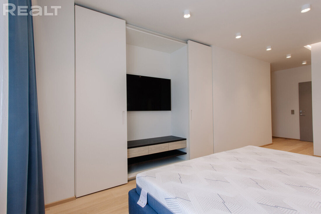 В квартире сделаны две спальные комнаты чуть больше 20 «квадратов». Мебель — датская, встроенная мебель — белорусского производства.