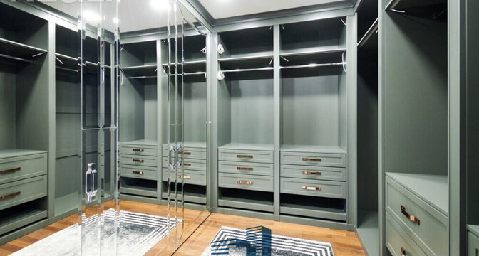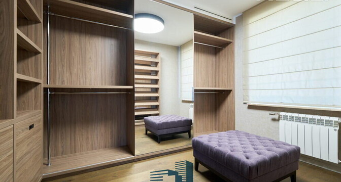 В прихожей расположен шкаф-купе, который скрывает за собой систему "умный дом" и оптическое хранилище данных, для удобного доступа с любого устройства подключённого по Wi-Fi.