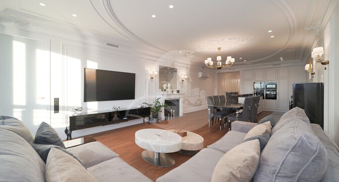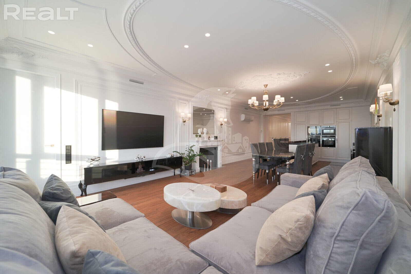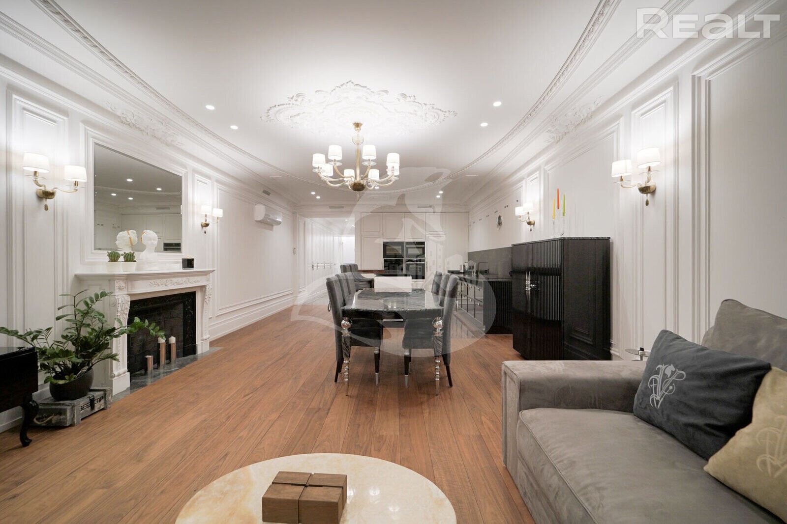 Квартиры, которые мы нашли в базе Realt, находятся известных домах: ЖК «Троицкое», D3, дом шести премьеров. Все они с большими площадями, роскошными интерьерами и запредельно высокой ценой на «квадрат». Вот, какие квартиры выставили на продажу. Цена — от 5500 долларов за квадратный метр.